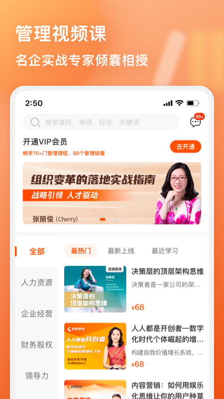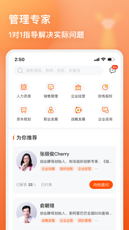 在管用APP里,设有张丽俊老师的管理读书会。还有众多来自各个企业管理实战专家所带来的管理视频课程。此外,这里有互助问答社区,能助力管理者解决日常管理中遇到的难题,也有管理锦囊可供参考。