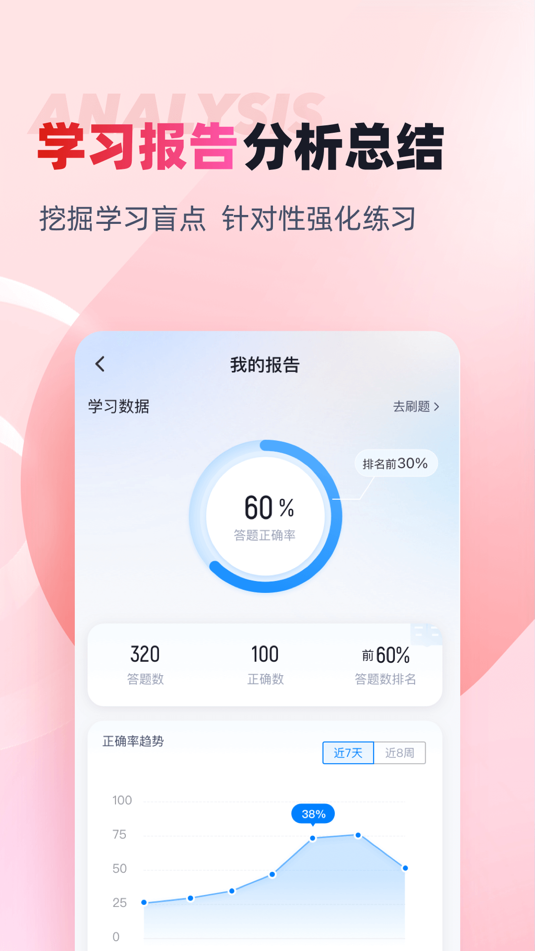 初级银行从业人员题库包含多种刷题模式,有考点练习、通用卷和地区卷模拟练习,还有按照固定考试比重随机抽题的真题考场。成绩单能够实时记录考试数据,将考生近期的学习状态以及自身正确率的提升情况逐步反馈出来,从而为考生顺利通过考试增添信心。