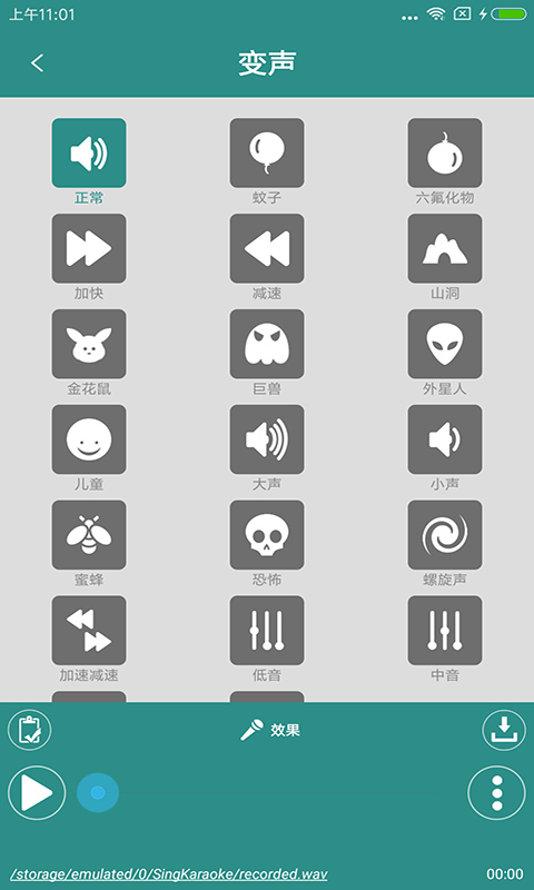 这是一款可以整人的变声器,可以让您的声音改变成多种非常有趣的声音,将已保存的音频文件通过社交app与您的朋友分享,让您的朋友大吃一惊,花栗鼠、小孩、老人、机器人、火星人、合唱、蜜蜂、外国人、紧张、喝醉、山谷、教学 、电话、水下、卷舌头、鸭子、恐怖电影、魔鬼、小机器人、大机器人、外星人、巨人、风扇、大外星人、沙哑等数十种声音让您选择。功能强大,声音有趣,快下载来试试吧。