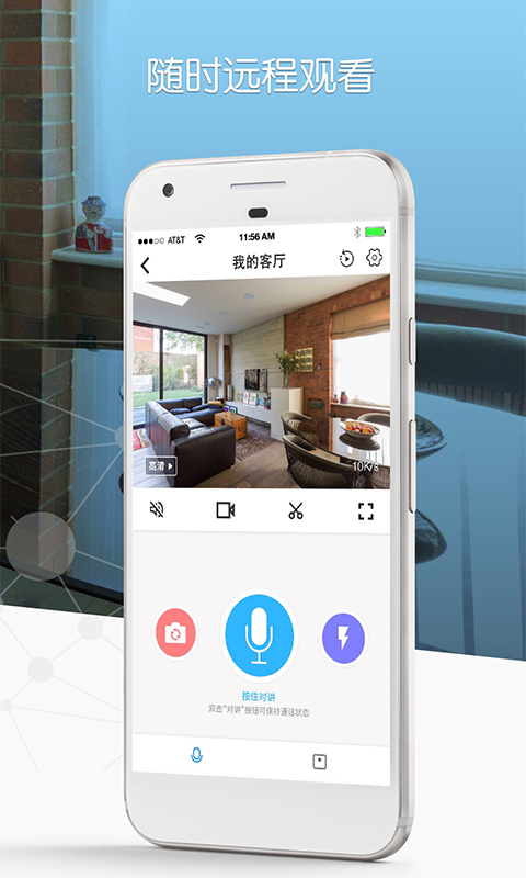 4. 双向对讲:只要按住手机上的对讲键说话,声音就能传达到监控现场。