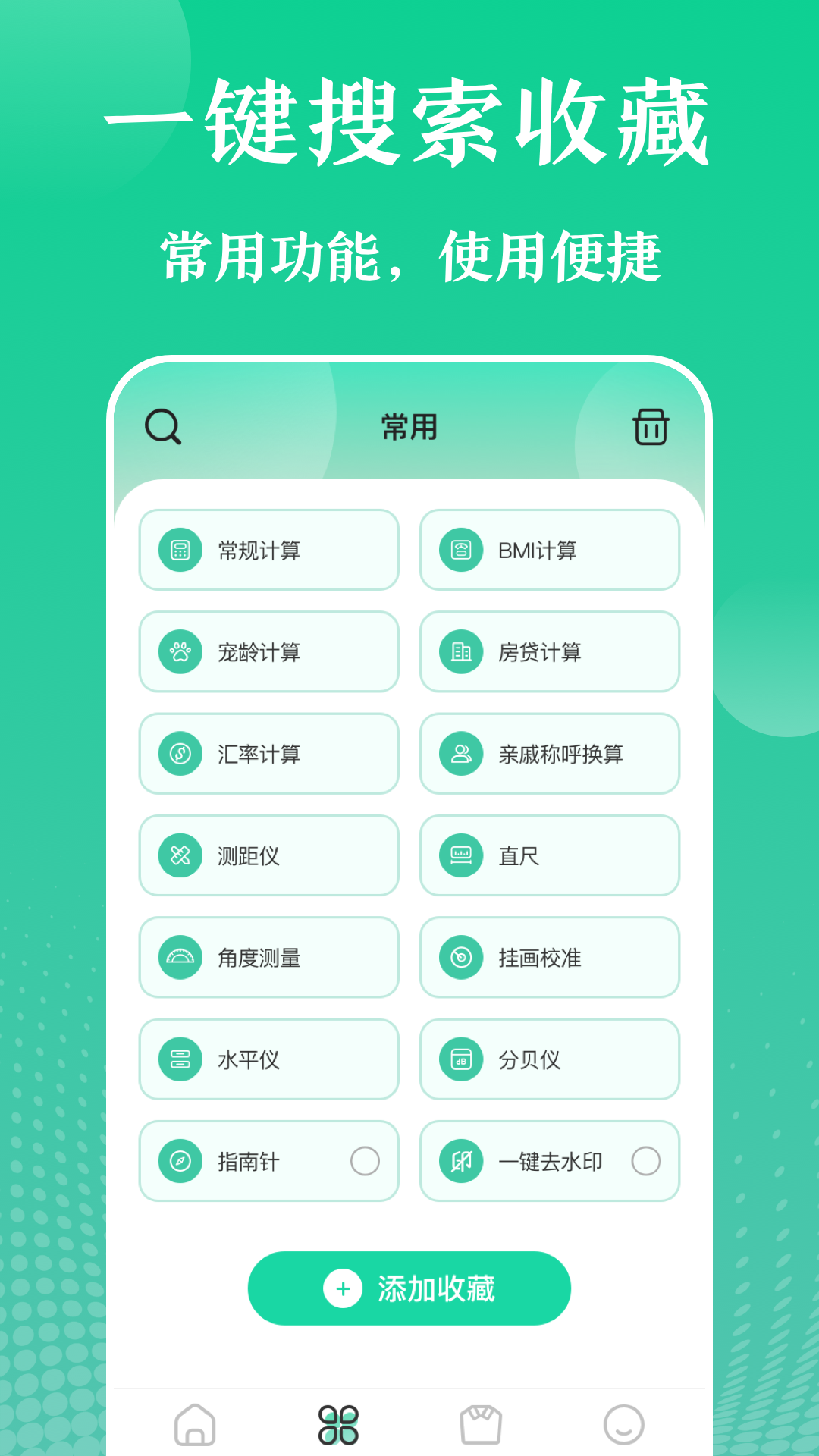 【一键搜索添加】首页工具太多?您可以一键搜索添加应用,作为您日常生活的小工具箱。