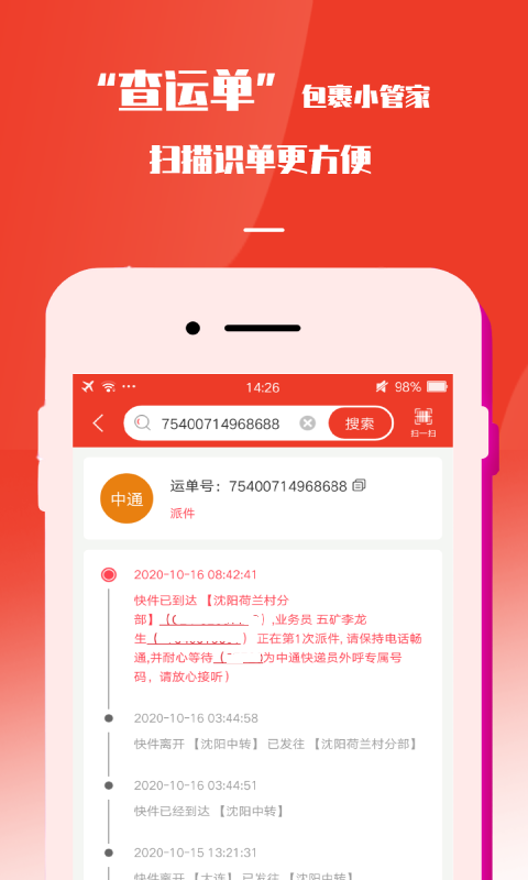 2. 扫描单号查询:借助扫描功能,扫描快递单号就能快速查询,操作简单快捷。