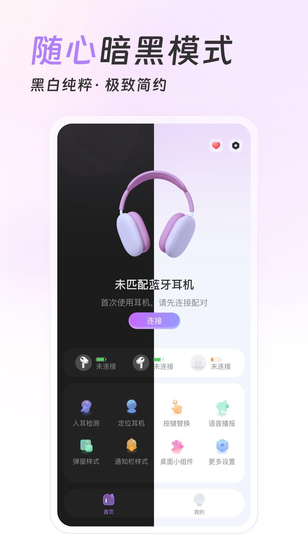 2. 可以在弹窗、桌面小组件、通知栏、状态栏显示耳机电量。