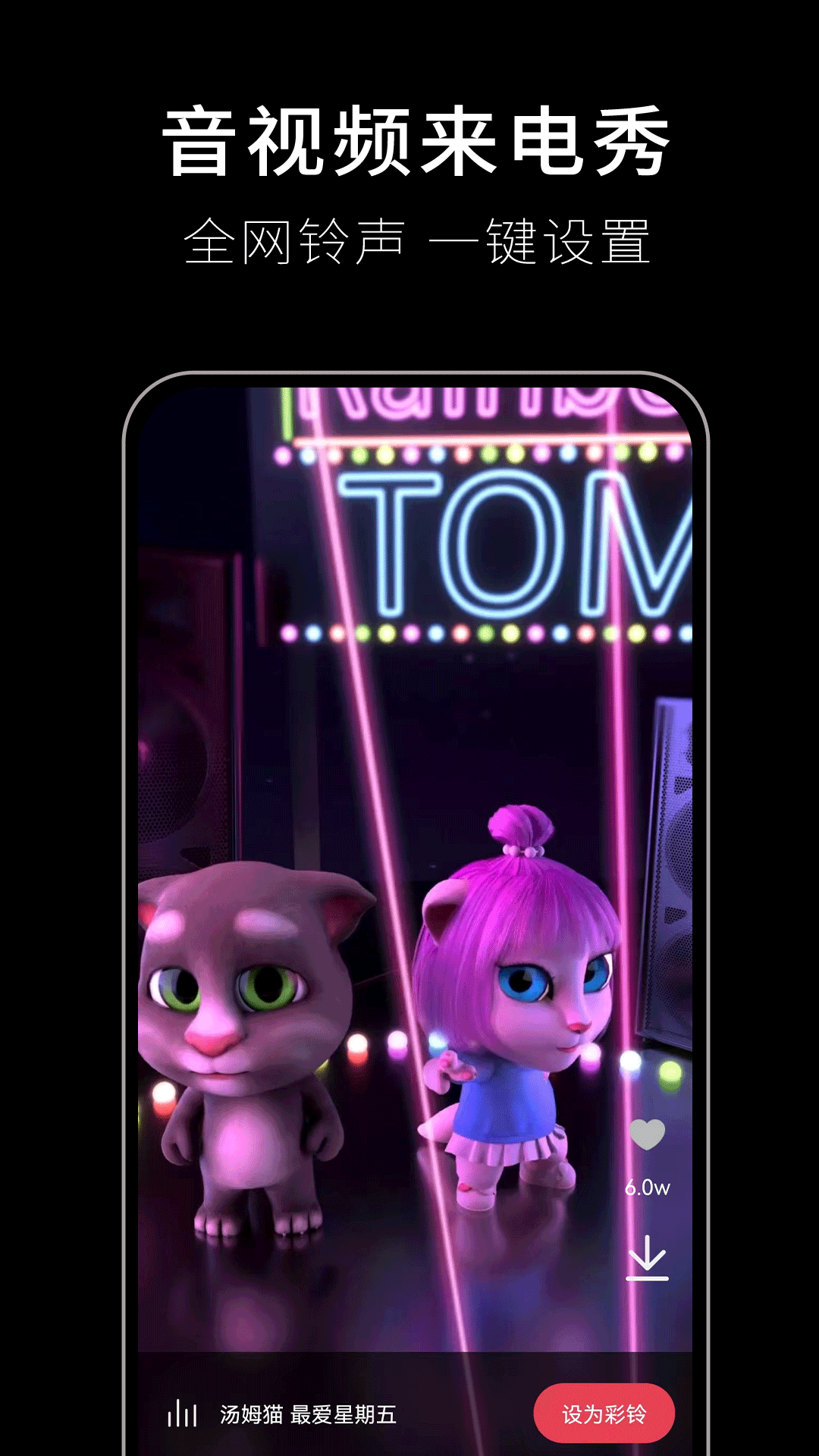 它具备百万高品质的铃声资源,还支持个性化DIY铃声剪辑,同时能够一键设置充电视频铃声!