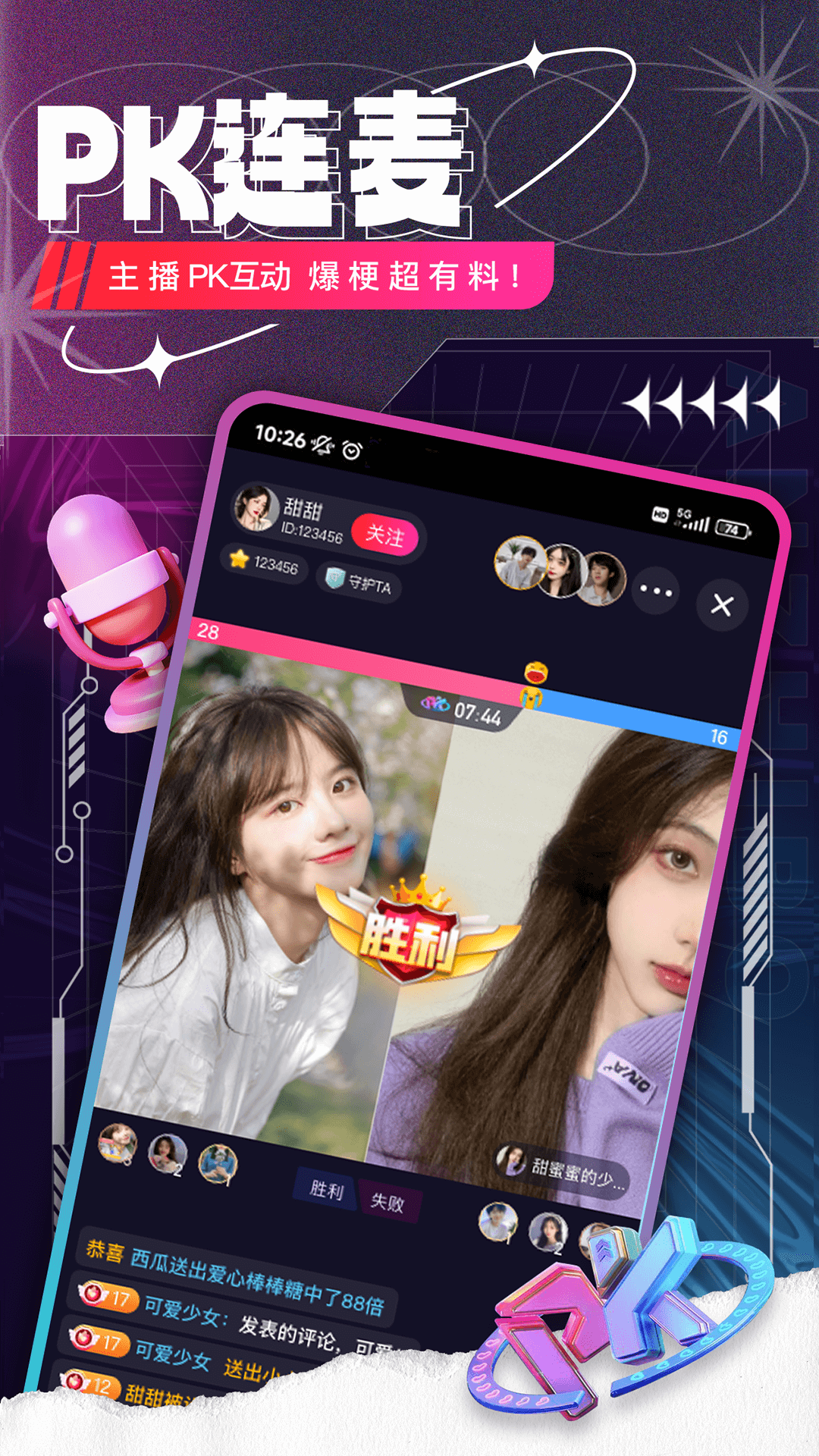 【PK连线】主播之间展开火辣的PK互动,节目中充满笑料,欢乐不断!