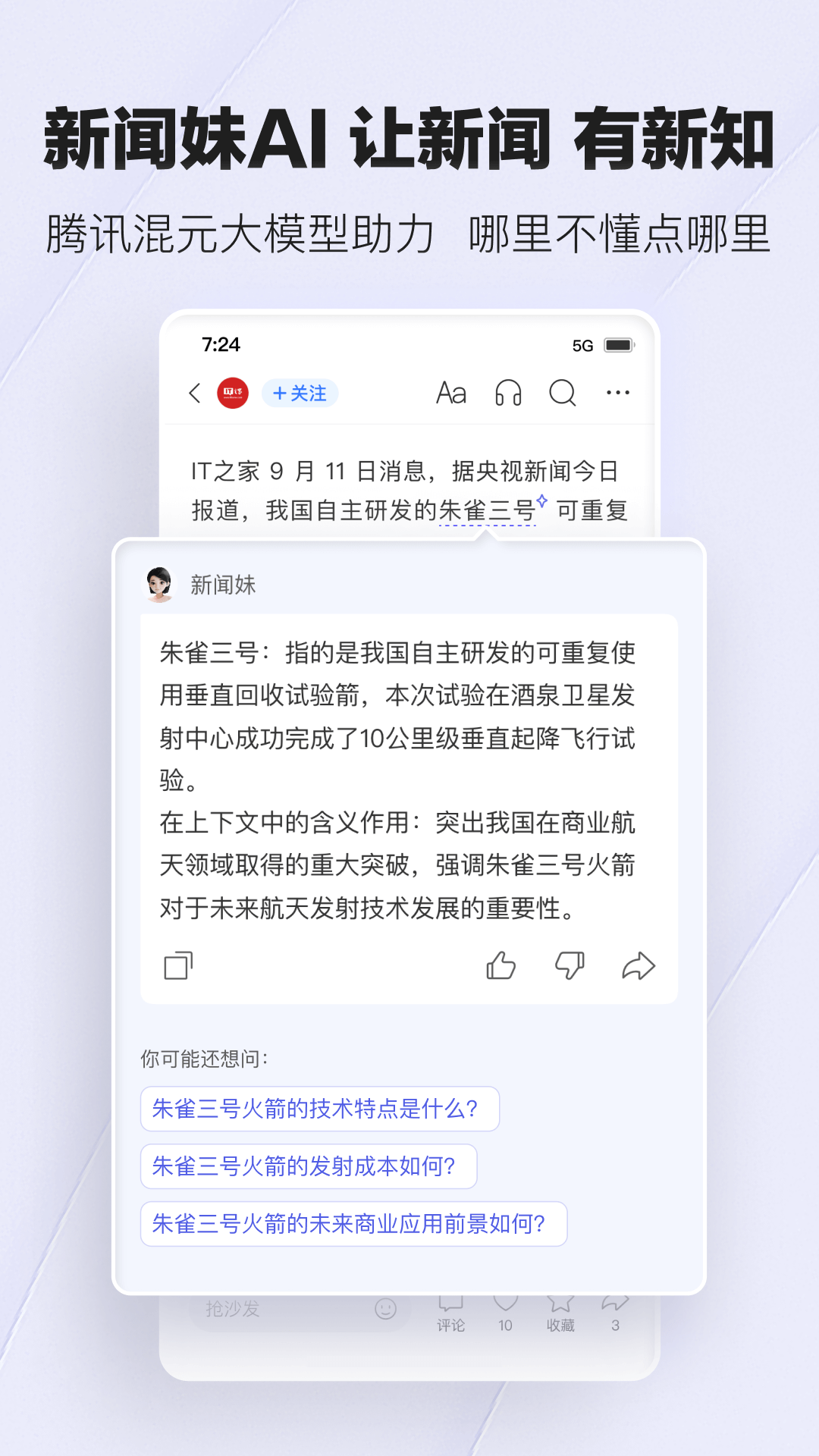 腾讯新闻是腾讯公司精心打造的7x24小时全方位资讯应用,提供高效、优质的精品资讯服务。在这里,你可以快速获取重大突发热门的新闻资讯,新闻出品的独家内容,同时可参与问答,直播,评论等多种互动,全方位了解新闻动态。