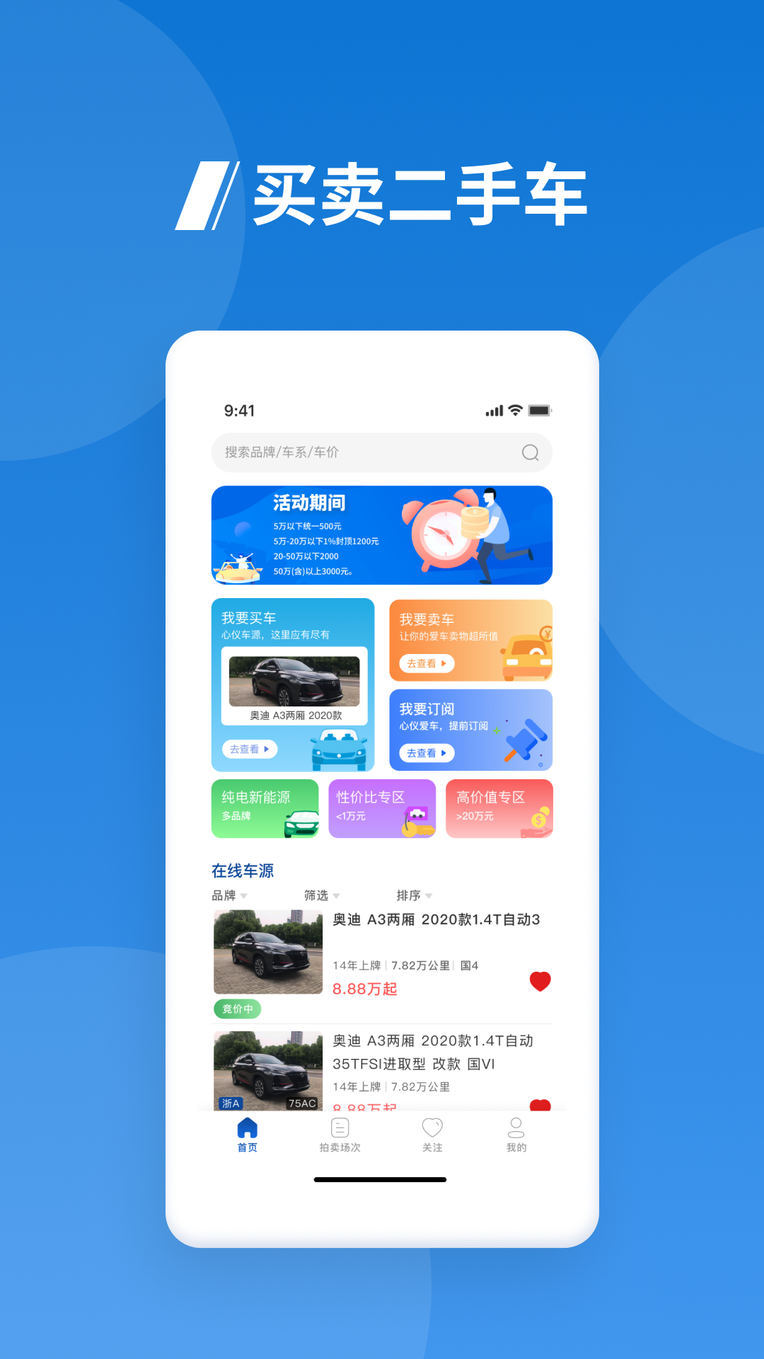 海外海汽车城打造的二手车一站式服务的二手车拍卖平台。