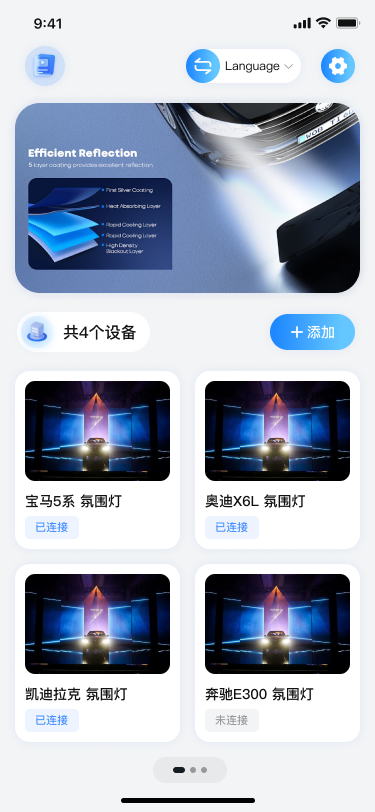 创客汽车产品APP界面展示:CKCP氛围灯