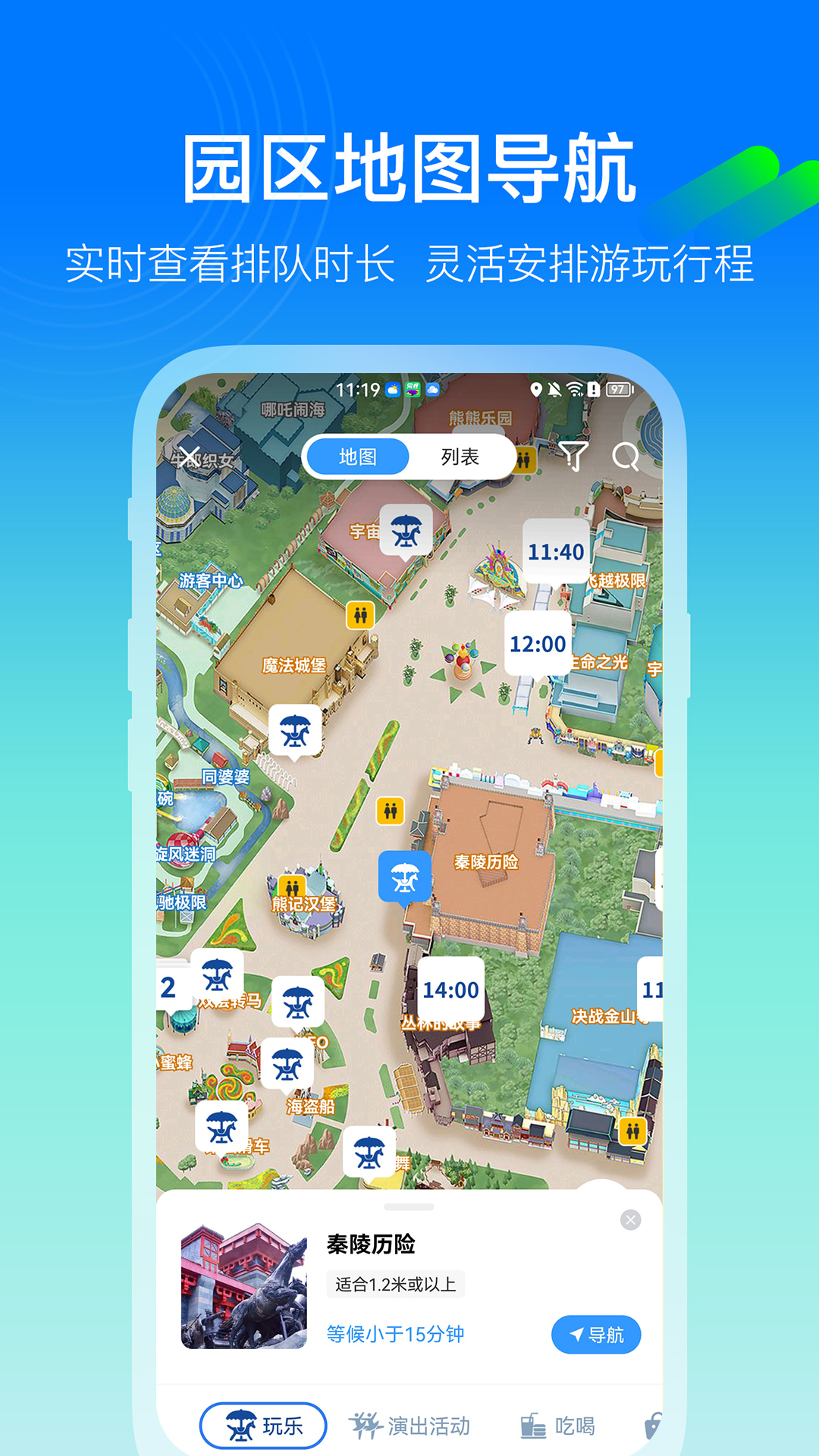 6. 项目等候时间:能迅速查看各个项目的排队等候时间,以便您灵活规划游玩行程。