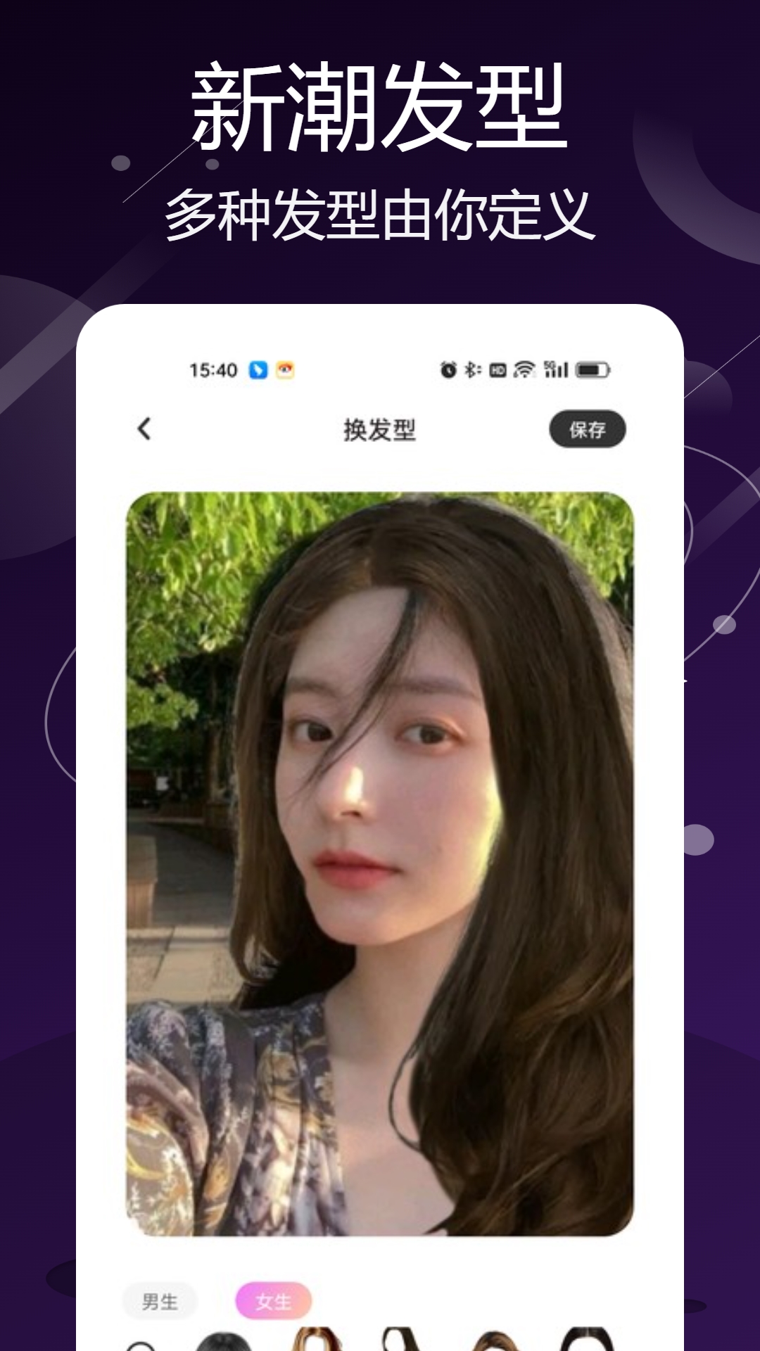 其二,拥有换发型功能,只需一键就能选择自己喜爱的发型并与照片相搭配,瞬间就能让照片呈现出超乎想象的效果。