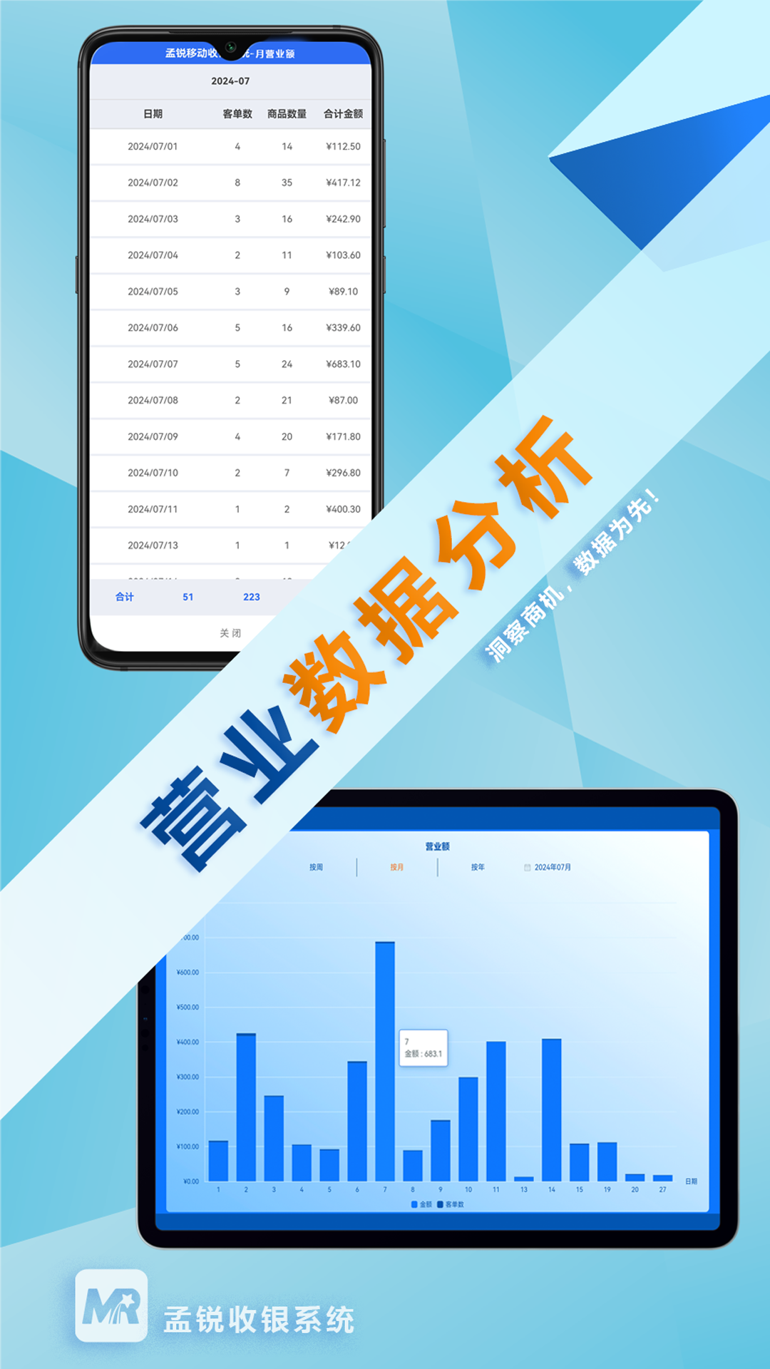 - 能够实时汇总营业数据,并且对商品销售数据进行分析,为商家的经营决策提供数据依据。