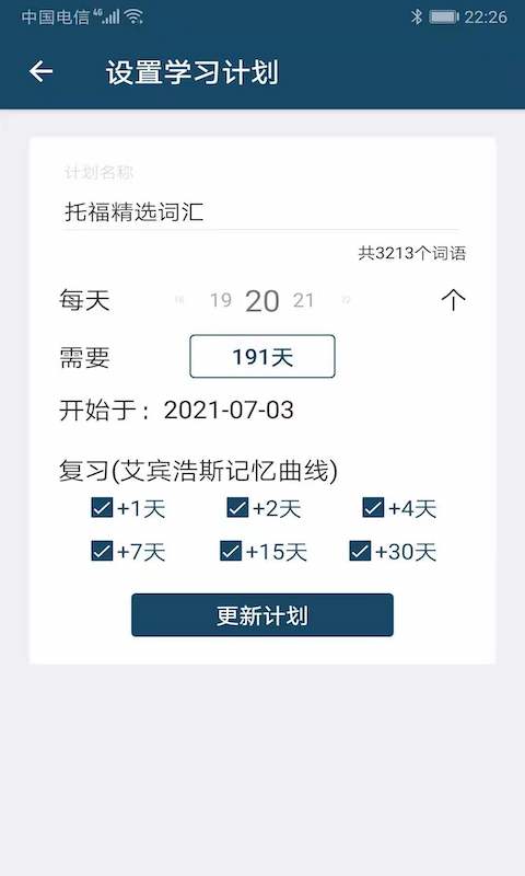 您还可以使用记忆曲线,创建学习计划,自动规划需要复习的单词,并且每日自动提醒您。