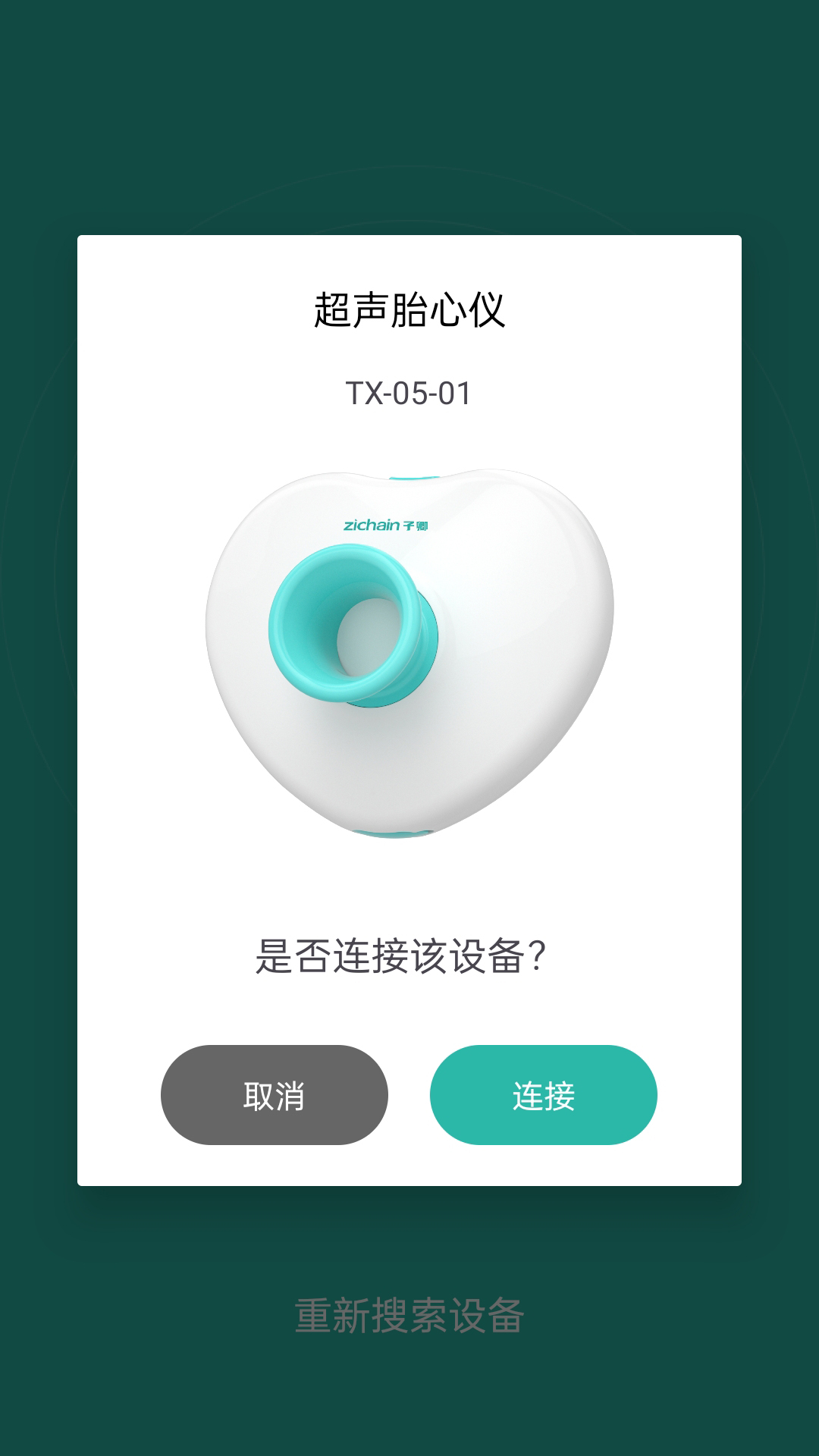《子卿医疗》app的目的是方便客户使用超声胎心仪,app的主要功能是设备搜索功能,超声胎心仪首页包含蓝牙连接、测量记录、测量提醒、胎心数值显示、绘制胎心曲线功能。