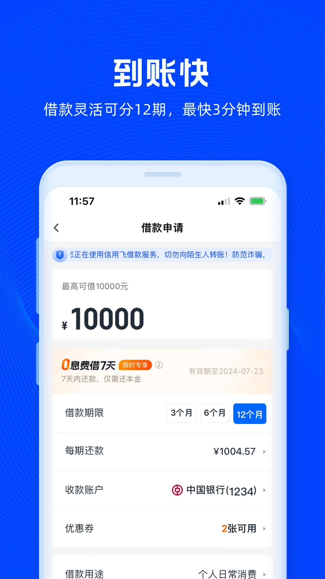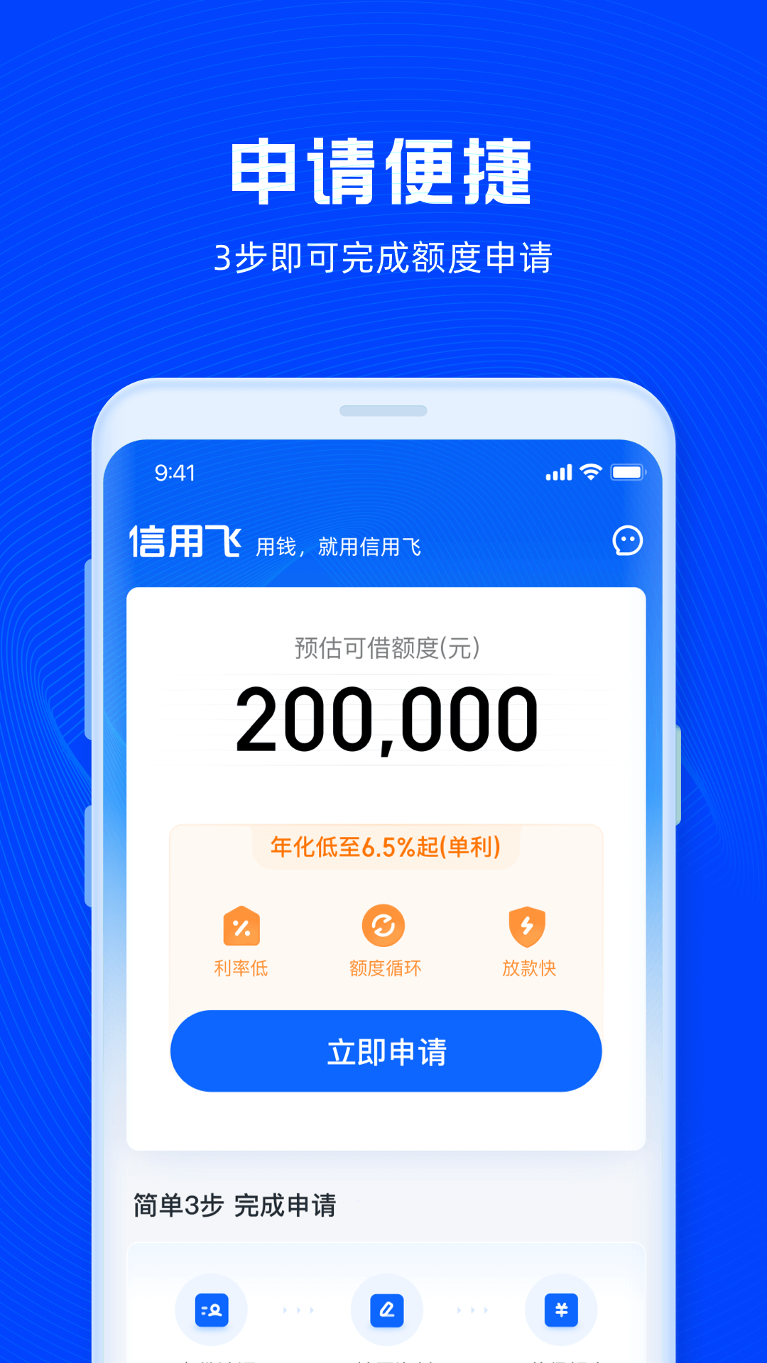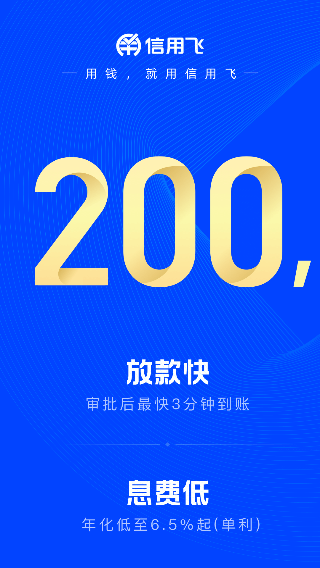 需要用钱的时候,就选择信用飞吧!仅需身份证,最高可借额度达20万哦。