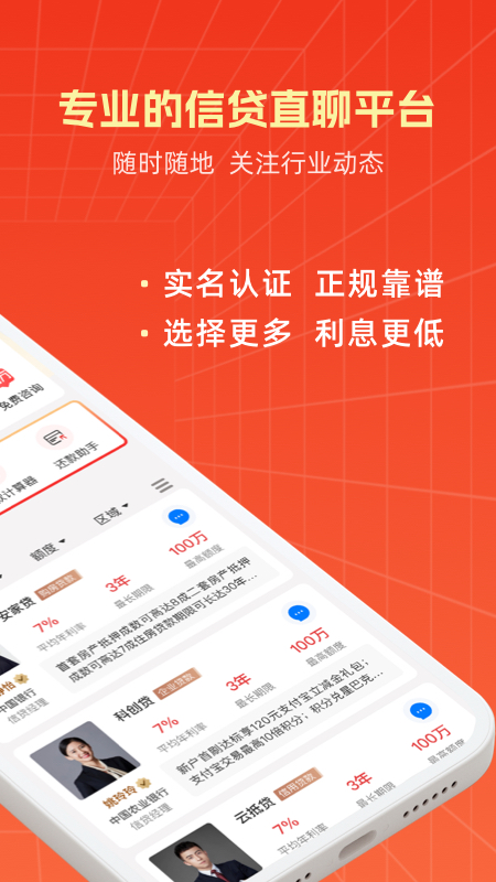 东融APP精准锁定银行机构信贷圈,是一个纯线上的专业信贷直聊平台。该平台旨在让大众无需出门,就能在线与银行信贷经理进行无障碍、无时间限制的沟通交流。