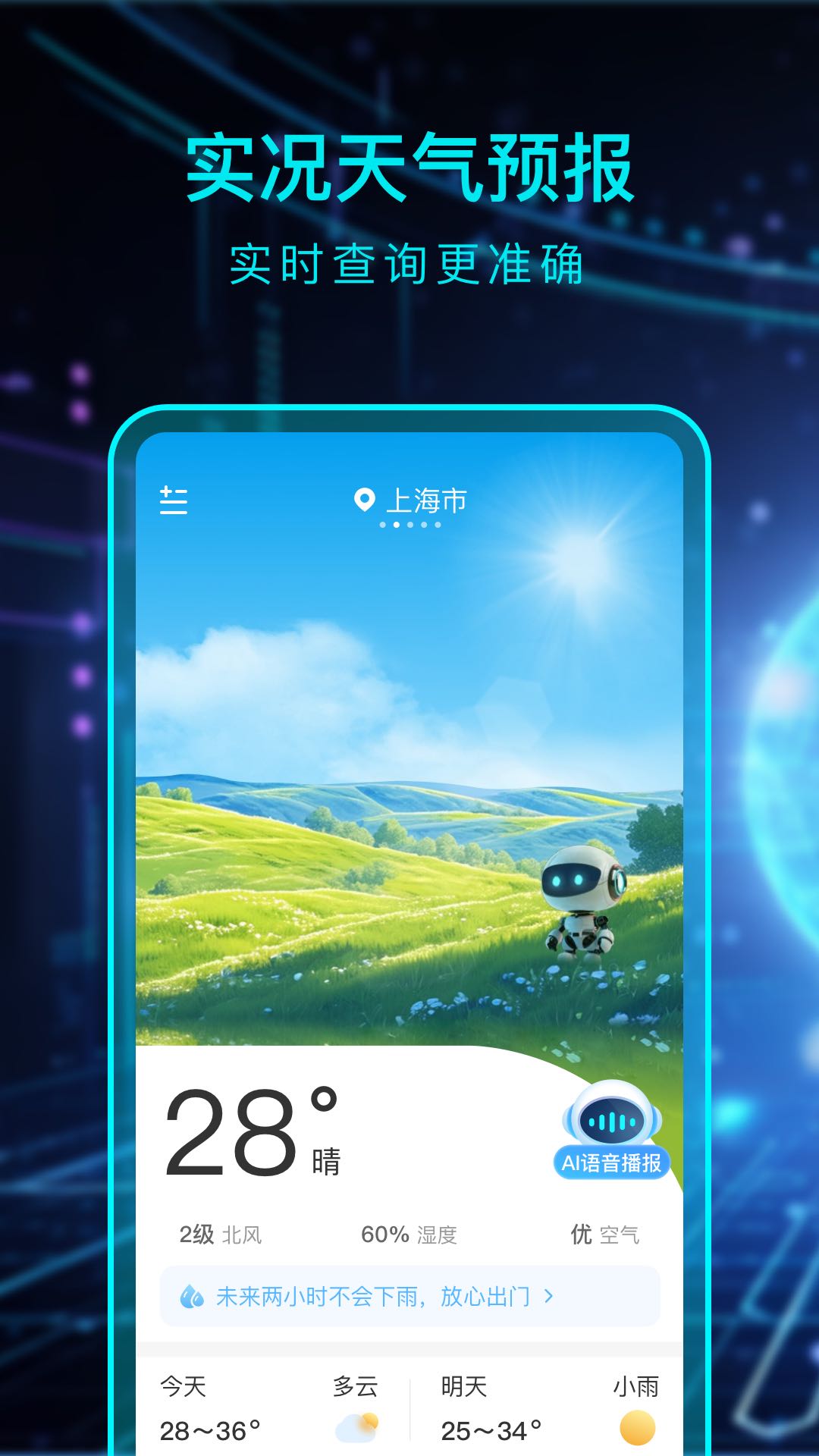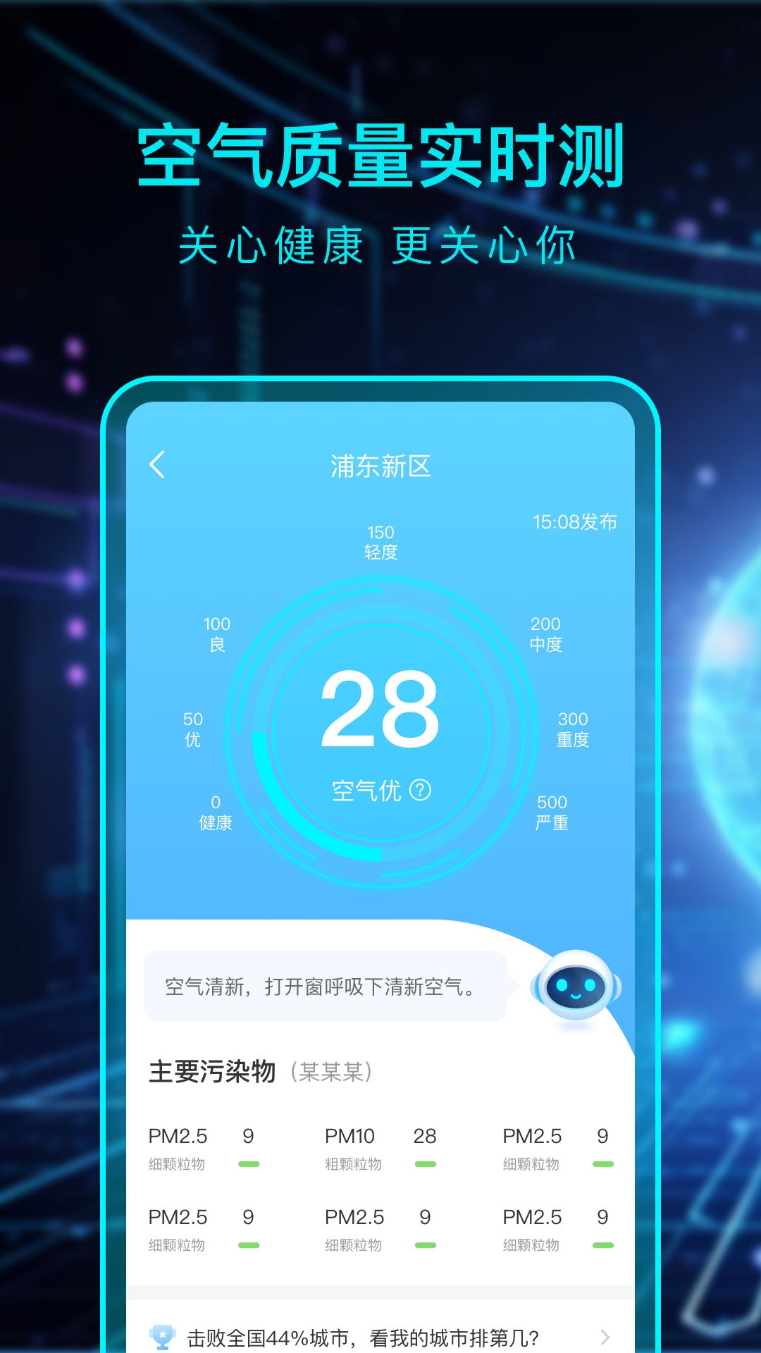 1. 实时天气:全面涵盖天气、温度、风力、风向、空气、湿度等信息。