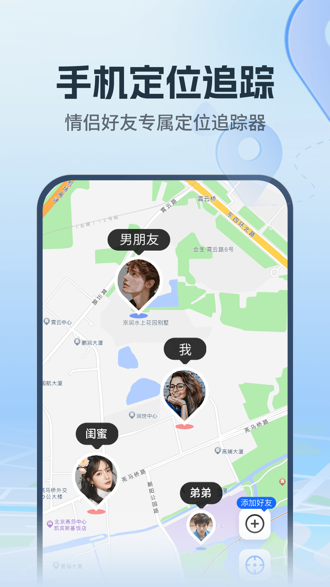 - 使用软件需双方下载并作好友,开启并授权相关定位权限,确保不会侵犯个人隐私; 我们是一款安全定位守护软件,专为朋友及家庭安全而设计,帮助时刻关注对方位置安全。因涉及用户隐私,获取地理位置信息须在双方知情同意的情况下进行。手机定位追迹手机软件仅限用于朋友或亲人之间使用,不允许用于非亲友和陌生人之间,仅限在自己设备使用。