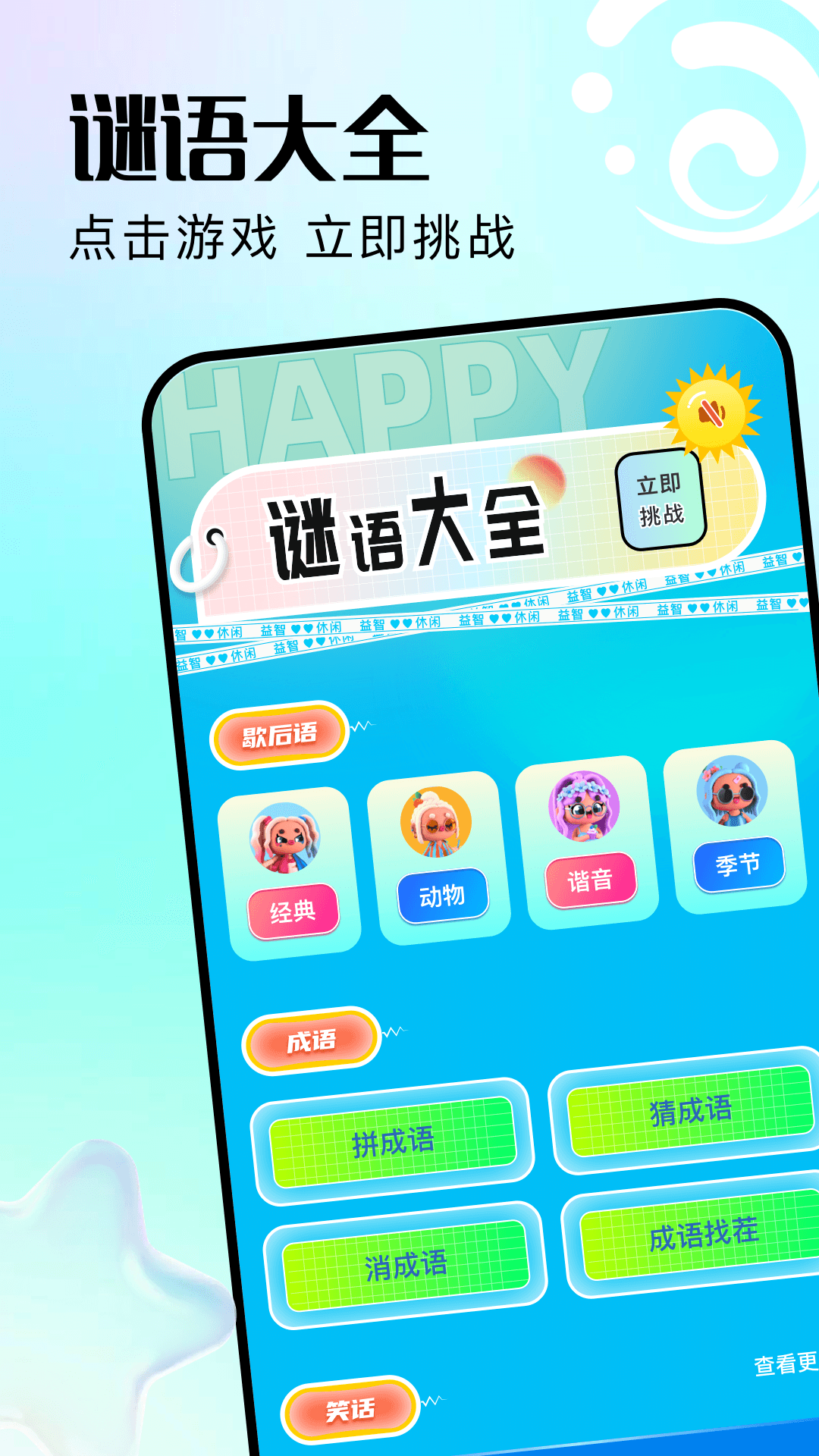 这款应用简直就是汇聚知识与趣味的宝藏啊!在其“脑筋急转弯”板块里,你能够自主挑选难易程度,就此开启一场满是惊喜与挑战的思维之旅。不管你是刚刚涉足脑筋急转弯这类游戏的新手,还是已经身经百战的高手,在这儿都能找到契合自己的挑战等级呢。