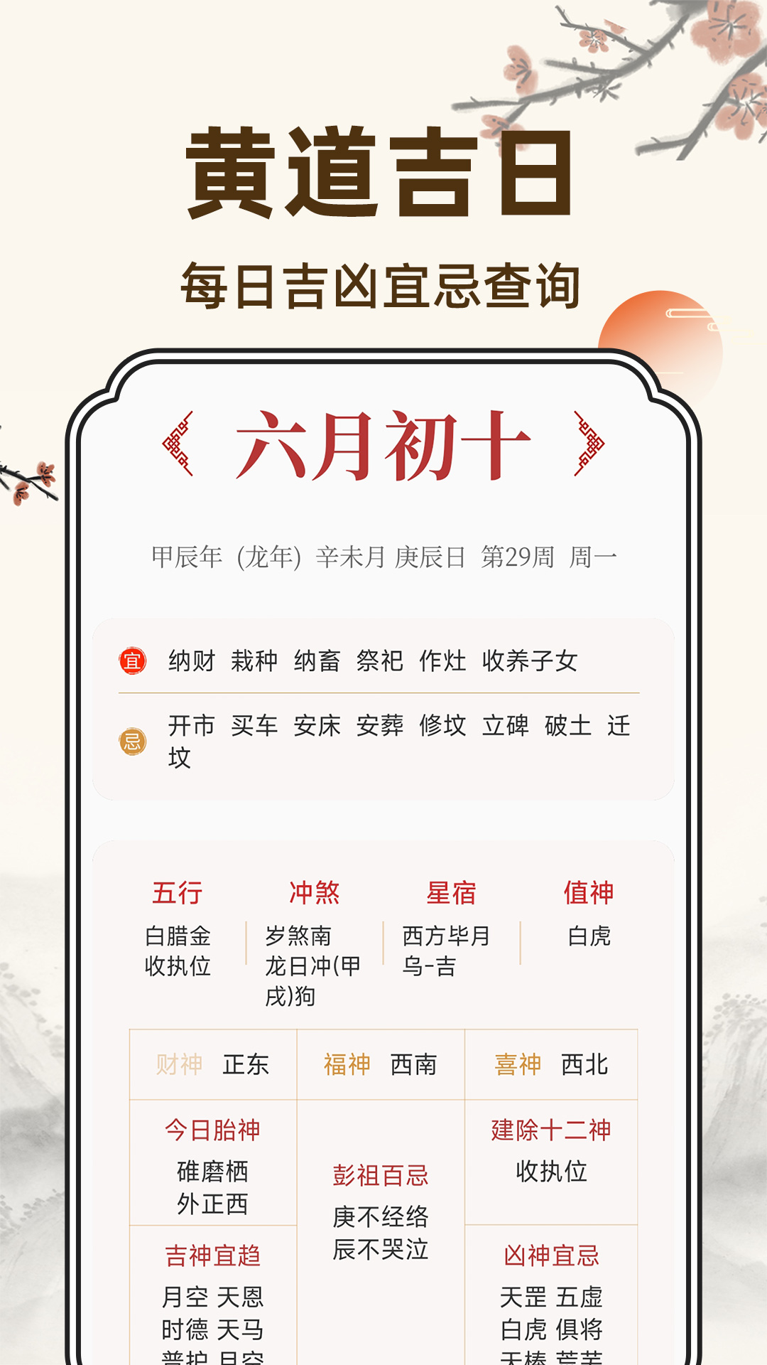 官方专业准确的万年历应用,周易万年历统算的电子版app,便捷专业的生活工具。