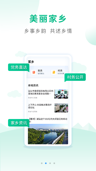 它全心全意地为每一位村民、个体经营者以及中小微企业提供线上服务,涵盖便民政务、信息发布、一对一普惠金融服务、产品销售与购买等多个方面。以数字化方式共同推动乡村振兴,携手构建乡村的美好生活。