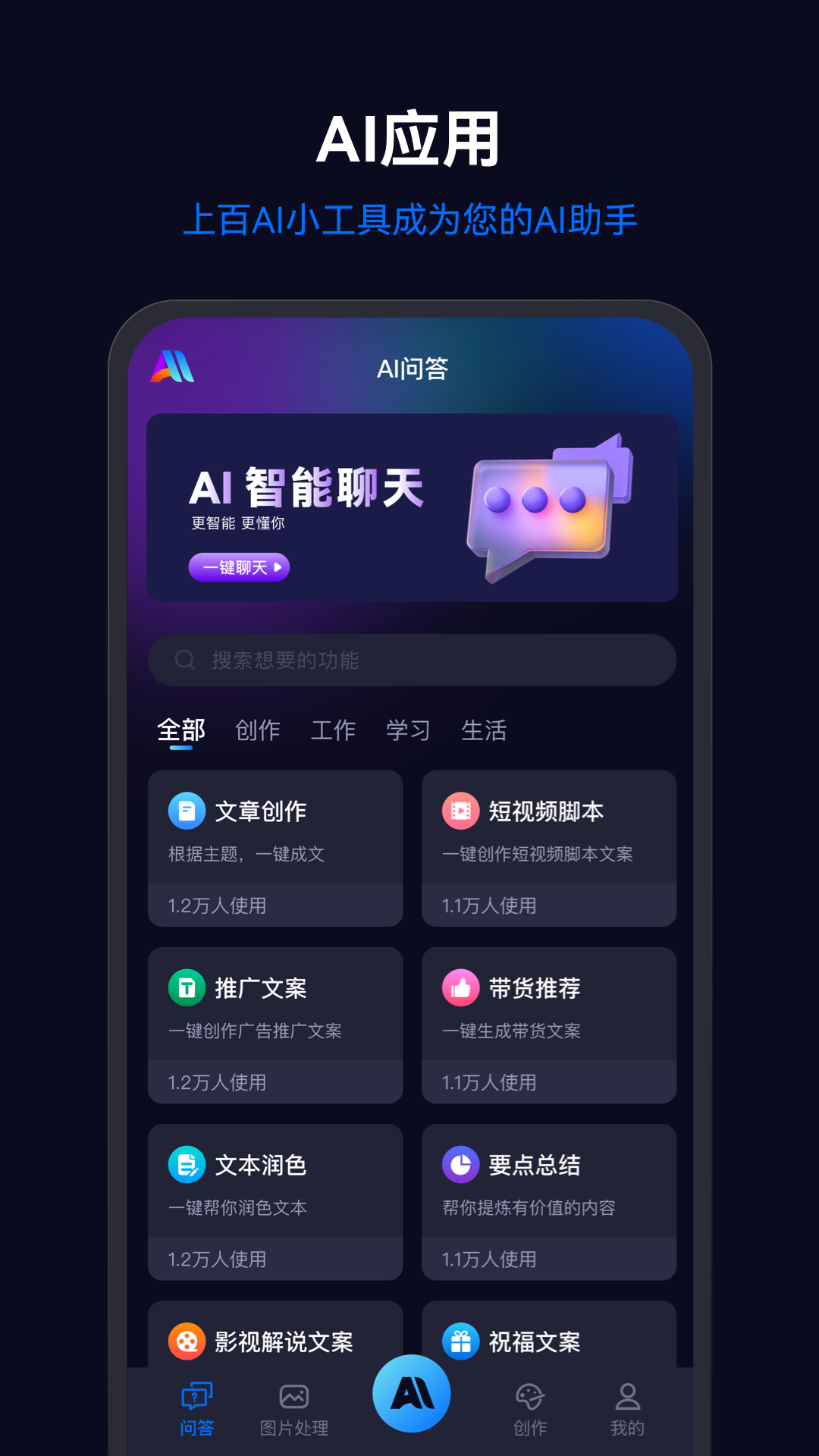 - AI聊天:可以与AI随心所欲地对话,话题不受限制。
