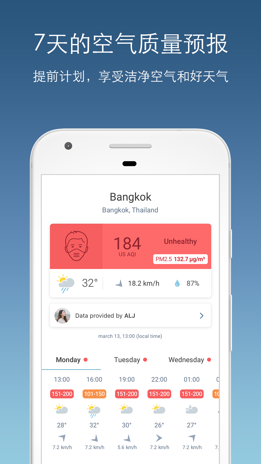 +未来7天的空气污染预报和天气预报:帮助您提前规划您的出行活动。