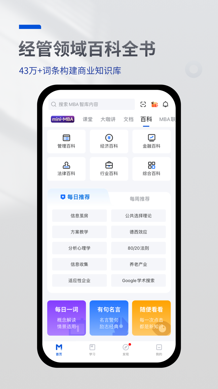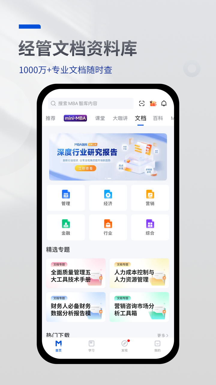 全新升级后的MBA智库,为用户提供了如下功能: