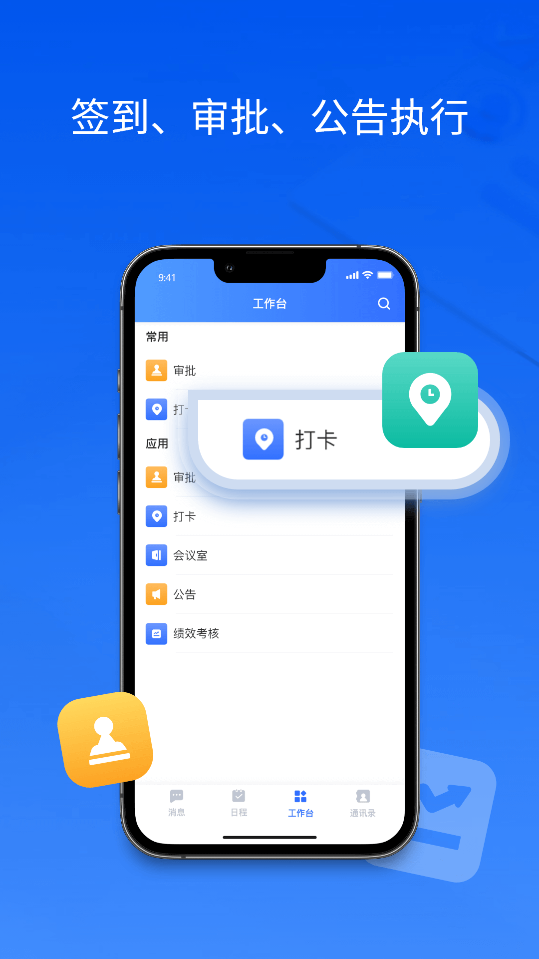 【OA应用】能够依据公司的实际使用需求设定打卡、审批、公告、绩效等管理项目,使企业管理更加灵活高效。