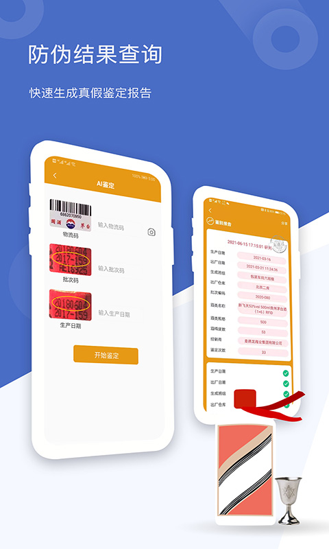 而物流码查询时,系统会比对原厂的物流信息,生成三码一致的比对结果,快速给出真假鉴别报告。