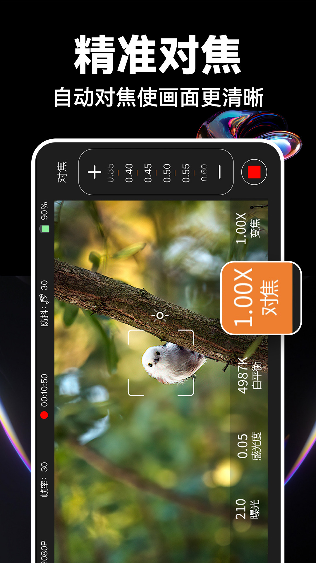 Pr专业摄像机是一款功能丰富、简单易用的视频拍摄App,专为您的手机设计。在您的指尖掌控曝光、对焦、帧率,以及视频录制的每一个方面。充分利用您设备的录像功能,录制专业级的视频。