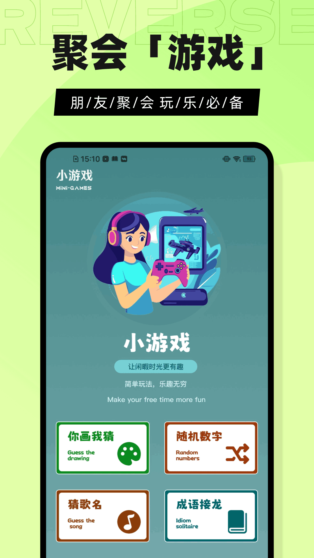 此外,我们的软件还增添了聚会小游戏模块,这里面内置了好多热门又好玩的小游戏,像猜歌名、你画我猜、成语接龙、随机数字之类的。这些游戏虽然简单,但是充满了乐趣,能给你带来无尽的欢乐!充满好奇心的你还在等什么呢?赶紧下载我们的软件,和朋友们一起享受充满挑战的美好时光吧!