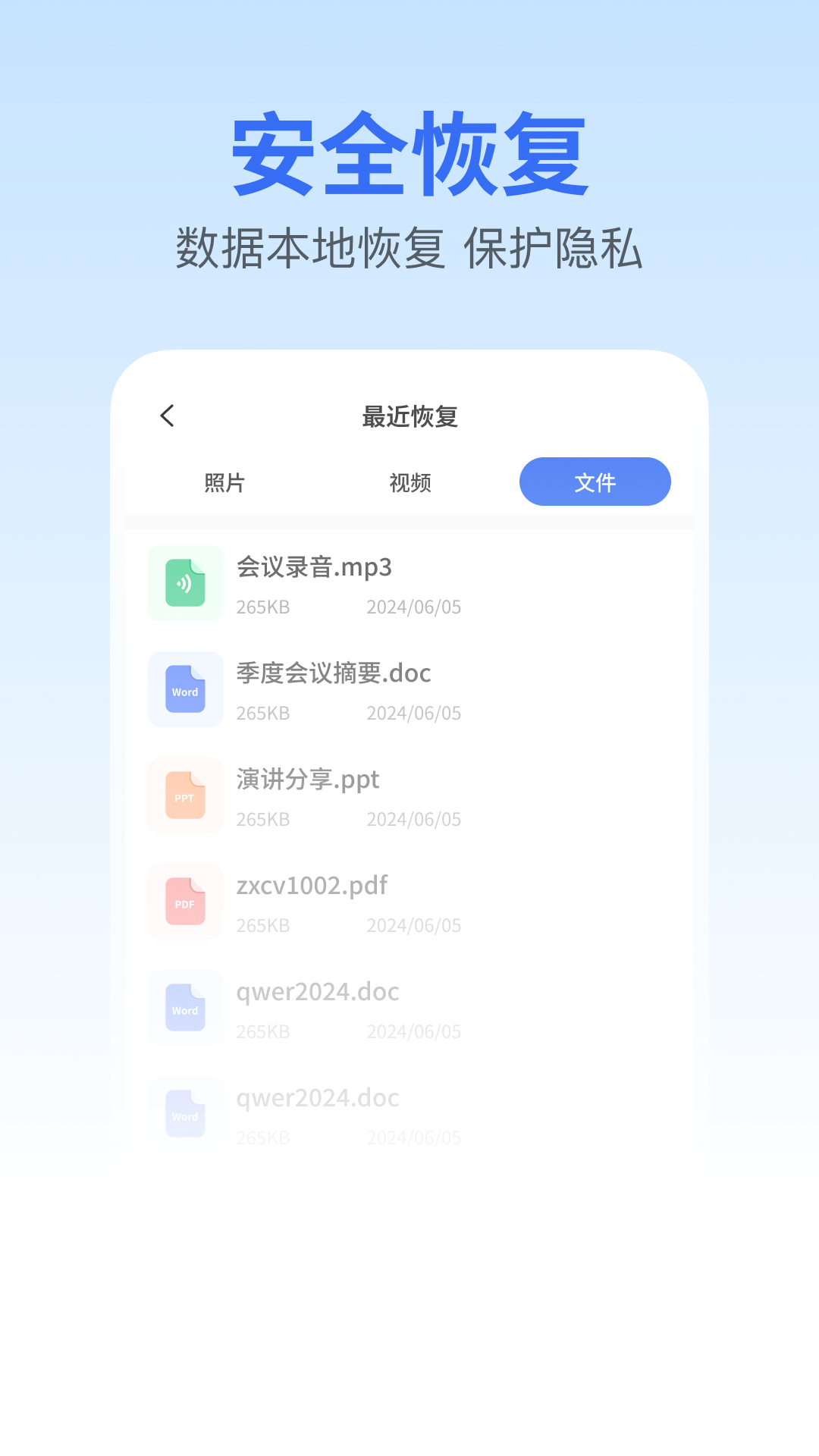 无论何时何地,手机照片视频恢复都能帮您找回珍贵的记忆和重要文件。立即下载,体验专业的数据恢复服务!