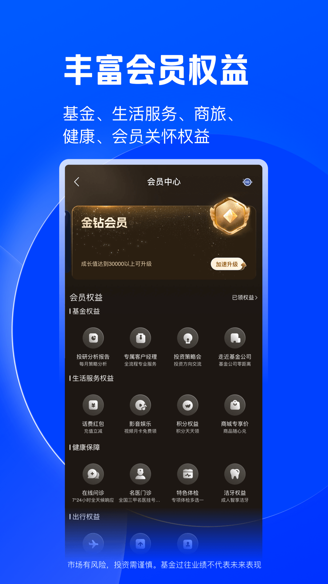 1、基金交易:业内基金多品类覆盖,交易快,操作便捷;