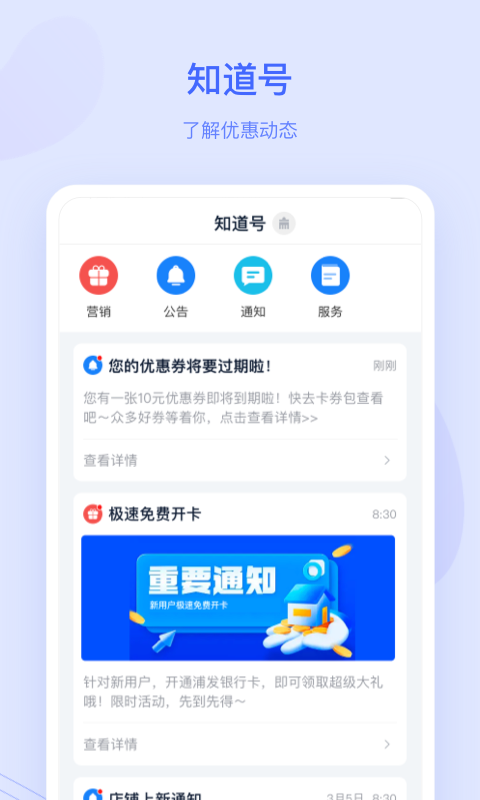消费者在蓝知街可接收到来自蓝知商家的内部活动消息、店铺上新的海报以及专享福利通知,不错过任何优惠信息。
