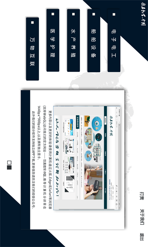 仿真教学APP是惠风教育技术将自身小部分自研产品整合于一个移动端应用程序进行展示的成果,这有助于提升大家对虚拟仿真教学的直观感性认知。