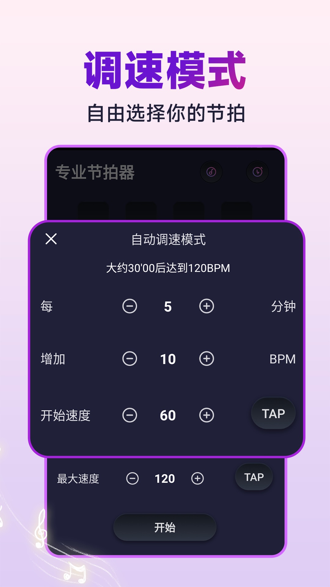 专为玩音乐练习乐器的你打造的一款专业节拍器!它可以帮助你轻松掌握乐器的音乐节拍,让你保持准确的节奏,能够更加享受音乐练习。它内置了十种高品质音色供你选择,不同节奏任意切换,操作简单随时随地都可以练习。节拍器音准王让掌握节奏律动变得如此简单方便!