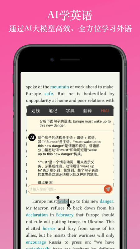 6. 电子书阅读、网页阅读、背单词页面均支持借助AI大模型学习英语。