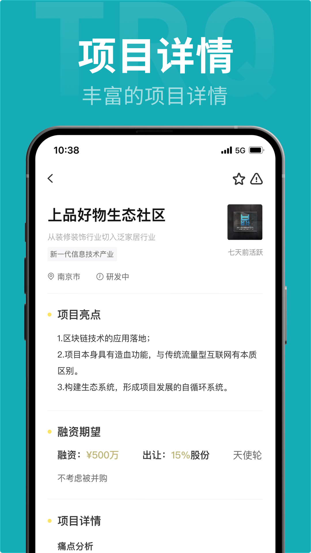 精准融资对接:投融桥App为项目方提供多渠道的融资机会,包括天使投资、风险投资、私募股权基金等。同时,平台支持老股转让、并购重组等多种资本运作方式,帮助企业在不同发展阶段获得所需的资金和资源支持。