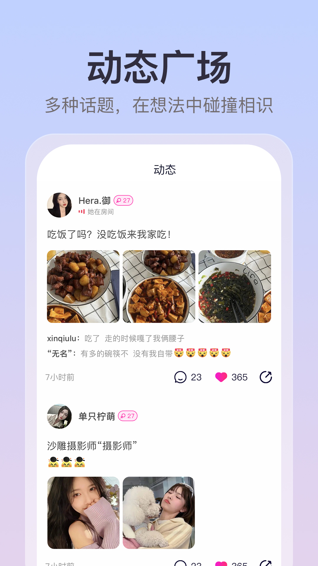 借助智能匹配算法,平台可以迅速为你找寻到那些与你兴趣爱好相投、性格上互补的伙伴。不管你是热爱音乐、钟情电影、痴迷运动,还是对旅行、美食、艺术有着独特的见地,在这里都能找到志同道合之人,共同分享生活中的琐碎点滴和欢乐时刻。