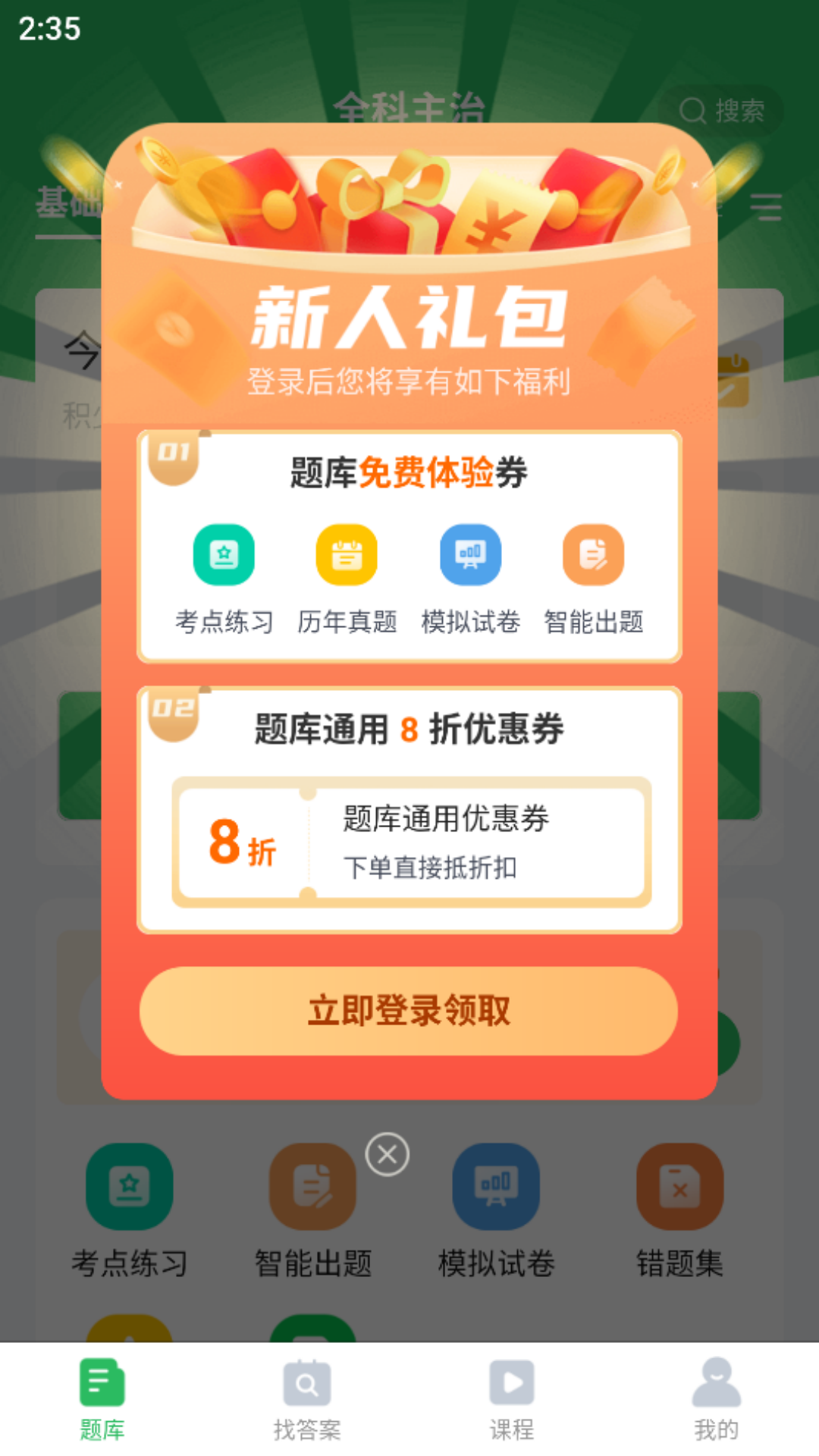 全科主治题库全新增加了搜题功能,对于全科主治医师题库相关的任何疑问,一搜就能找到答案,而且还支持语音搜题和拍照搜题这两种便捷方式。
