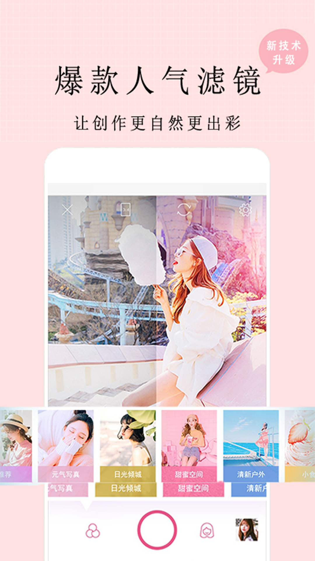 拍出精致五官;大眼瘦脸、美瞳唇彩,腮红眼影,对脸蛋的每个细节逐一美化,轻松拍出小仙女们的本仙气质。