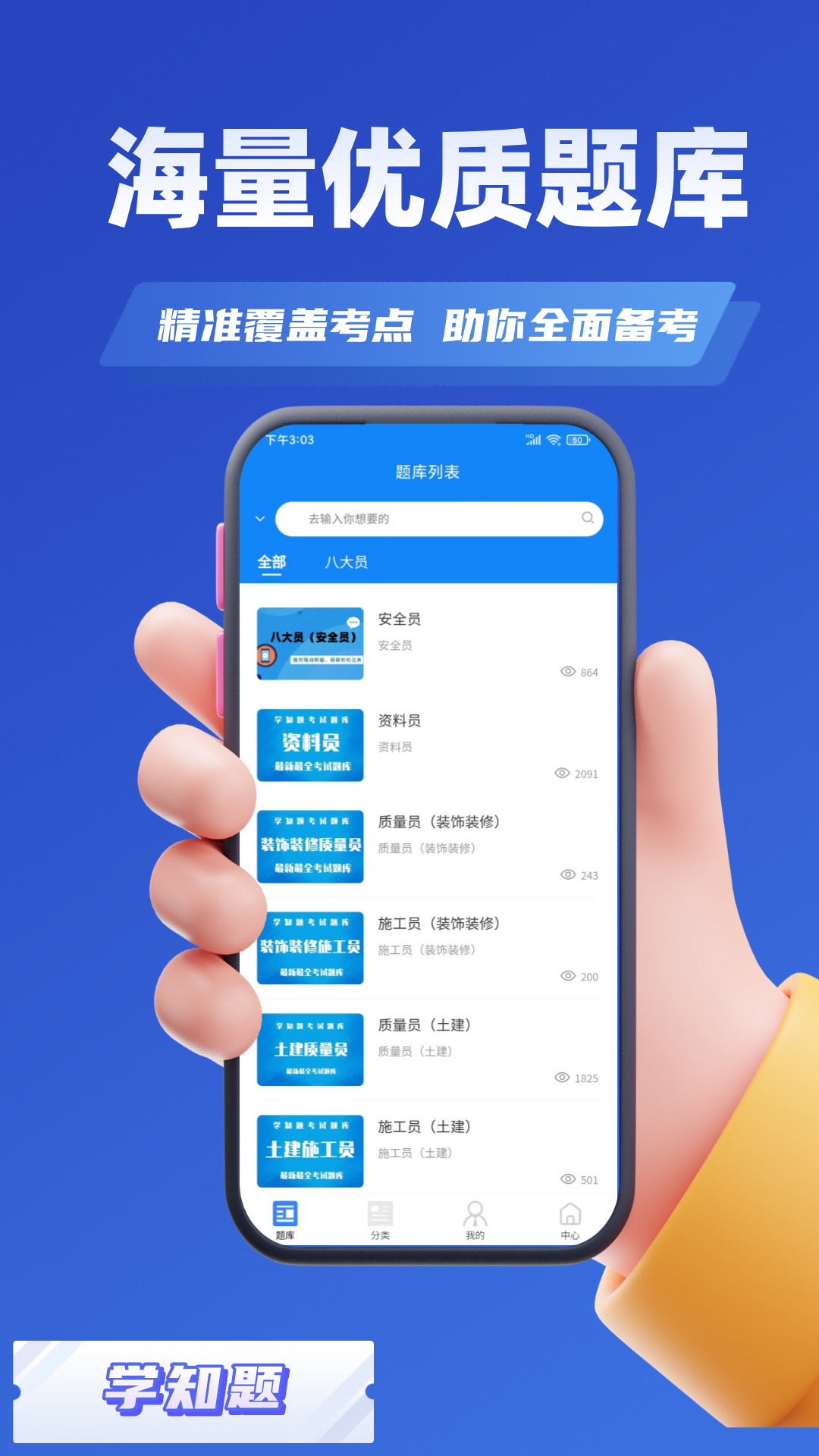 【八大员考试学知题】涵盖材料员、施工员、标准员、质量员、安全员、机械员、劳务员等八大员考试的全部知识点哦。这里面包含了各种实用的功能模块,像模拟考场、快速练习、考点练习、测试纪录以及错题重做等。学员们能够借助模拟练习,找出自己知识掌握的不足之处和薄弱环节,再利用错题重做功能来弥补自己的短板,这对顺利通过考试可是很有帮助的呢!