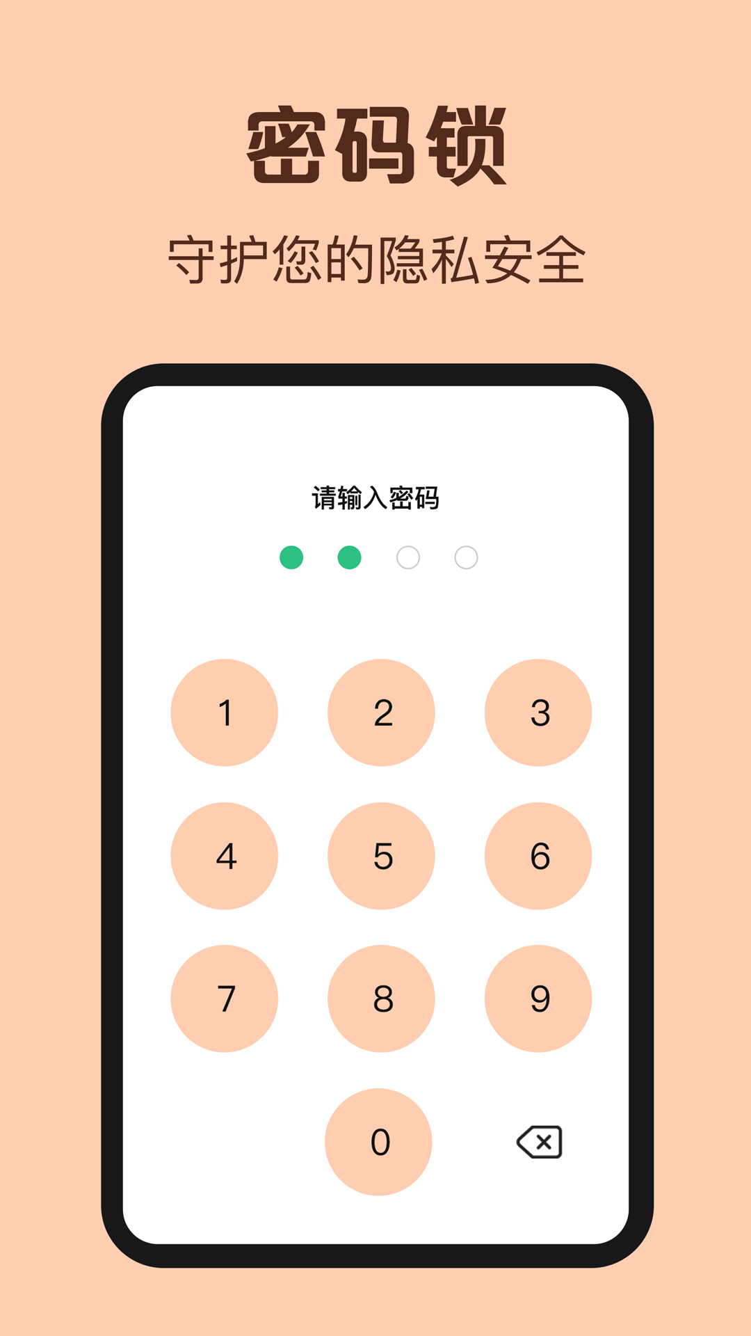 【密码锁】:为了保证您财务信息的安全性,鼠鼠记账还提供密码保护功能,如此一来,只有您本人能够访问自己的账本。