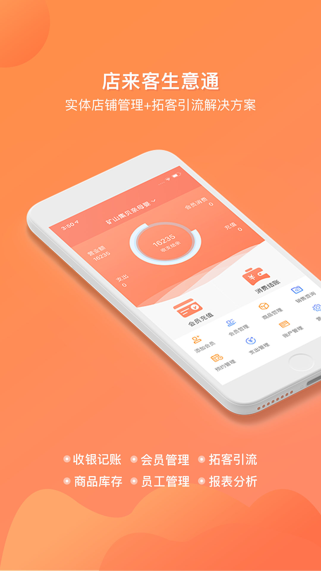 店来客生意通是一款在线智能会员管理收银系统,它将会员管理、储值、折扣、收银、积分、营销、库存等多种功能集于一身。