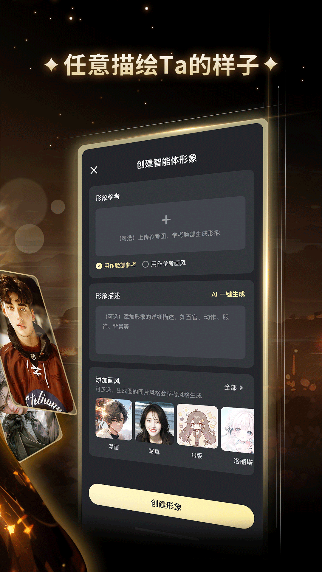 高质量的创建:只需简单描述,你就能够自由地定制AI智能体的“形象、声音、人设、技能”,还能与更多对AIGC感兴趣的用户进行互动,共同打造出内容丰富且充满趣味的智能体社区。
