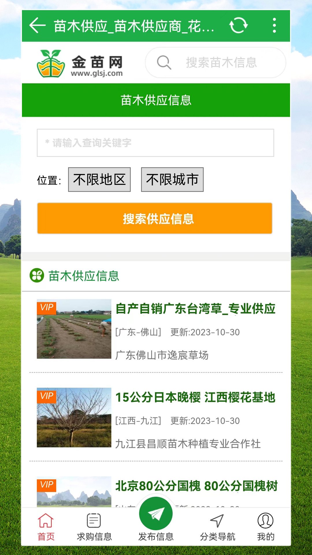 金苗网属于苗木信息平台,每日都会更新苗木供求信息,能够为用户提供快速、精准且有效的服务。其内容主要包含苗木供应信息、苗木求购信息、苗木产品报价以及苗木种植基地展示等。