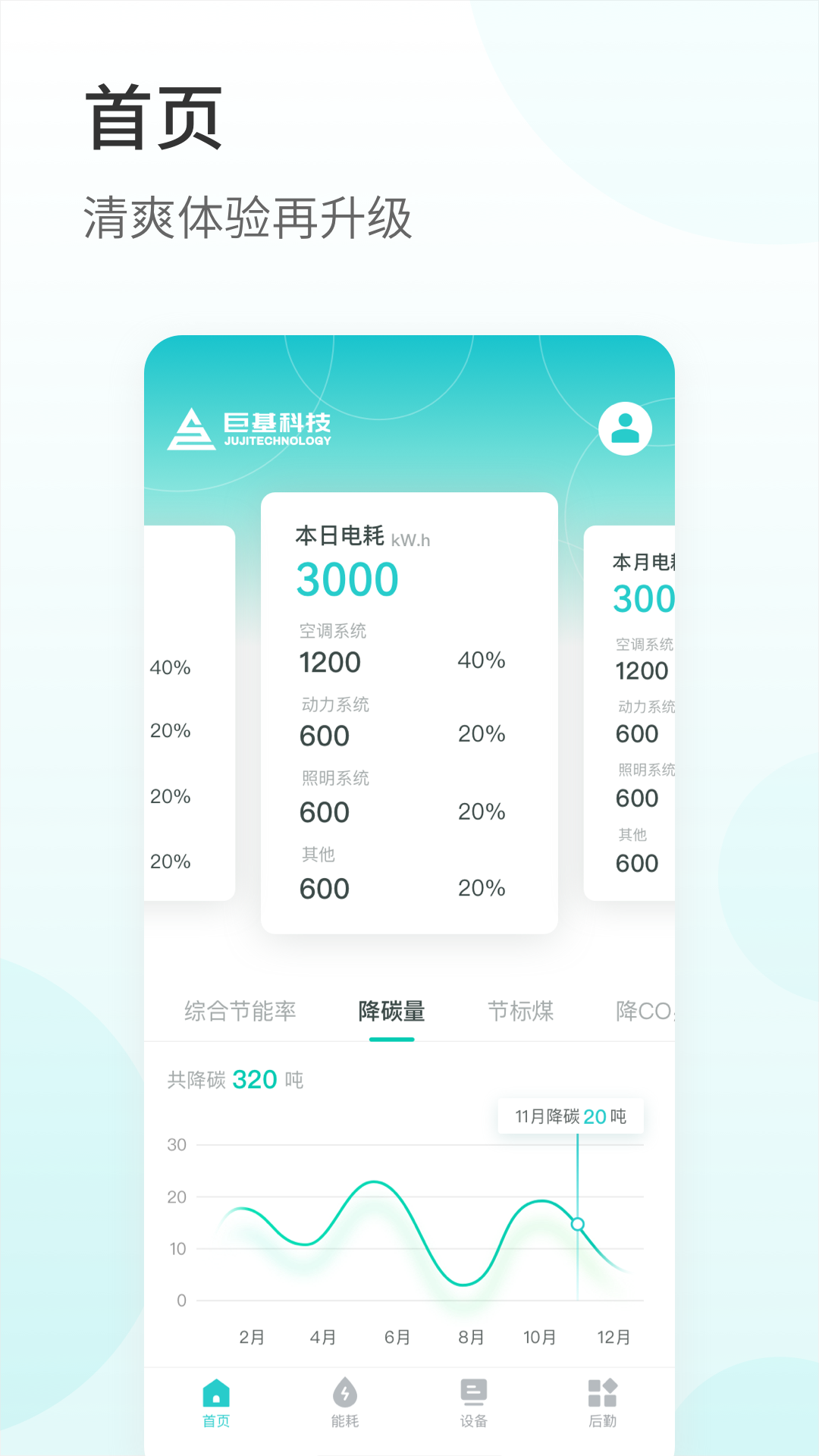 本APP由重庆巨基科技研发 针对于建筑领域的能效改造后,APP中可以实时查看改造后的能源情况,设备情况,用能情况的对比。 可以查看设备的运行数据。对设备的生命周期进行全方位的观察。 对建筑的降标数据和对系统能源进行实时的查看可管理。实时的观测能耗的浪费情况和不合理的地方