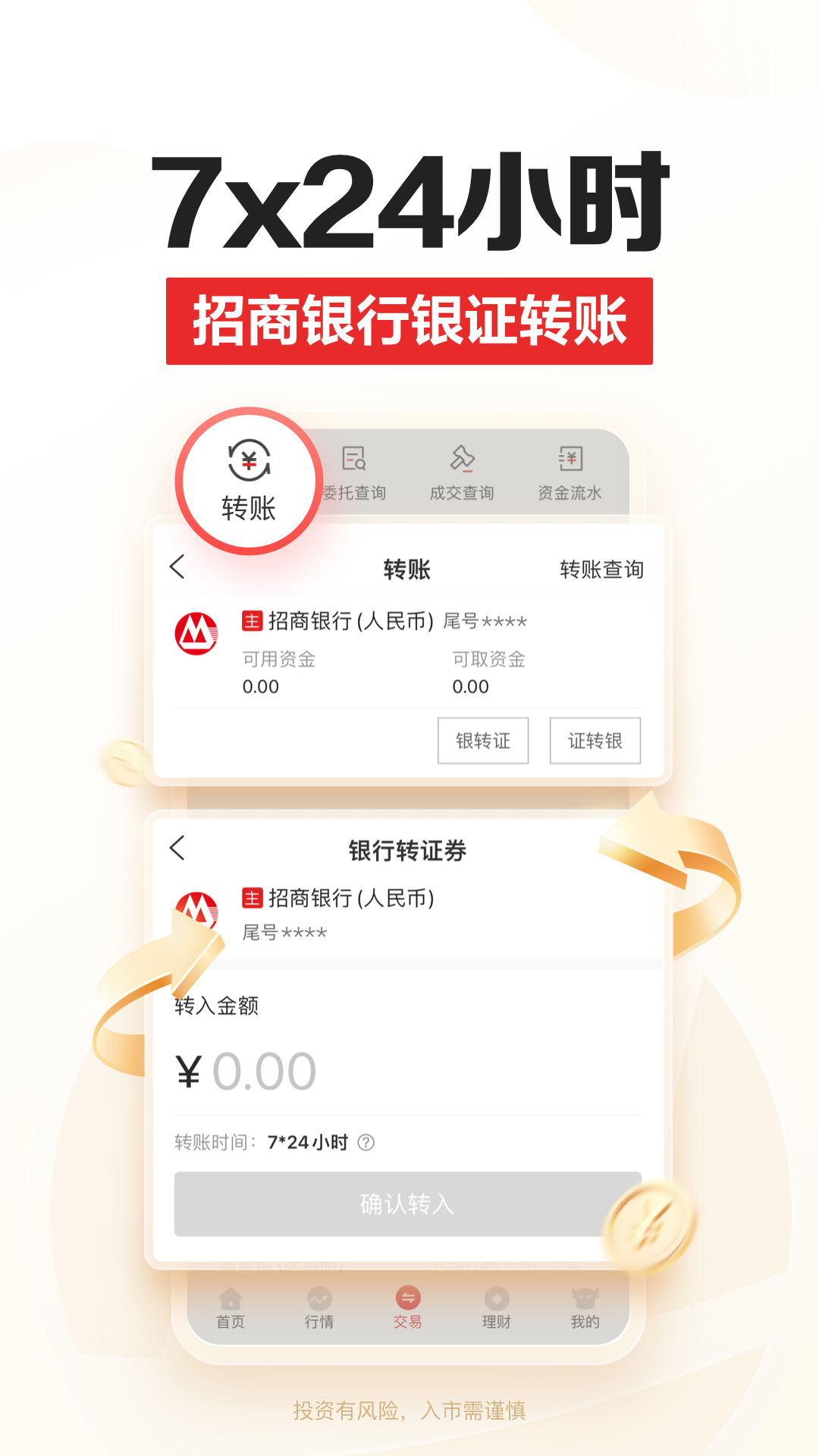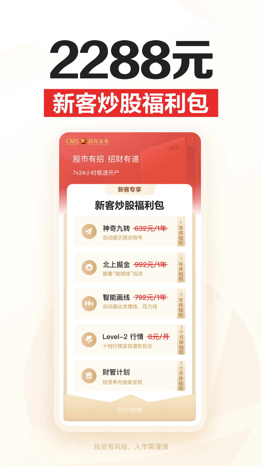 百年招商,值得信赖。招商证券APP作为炒股票、买基金,综合的财富管理服务平台,是超千万用户的选择。股市有招,提供多种选股策略服务工具;理财有招,超3000只基金申购费率1折起,逾1200只基金0元申购。选择招商证券APP,招财有道。