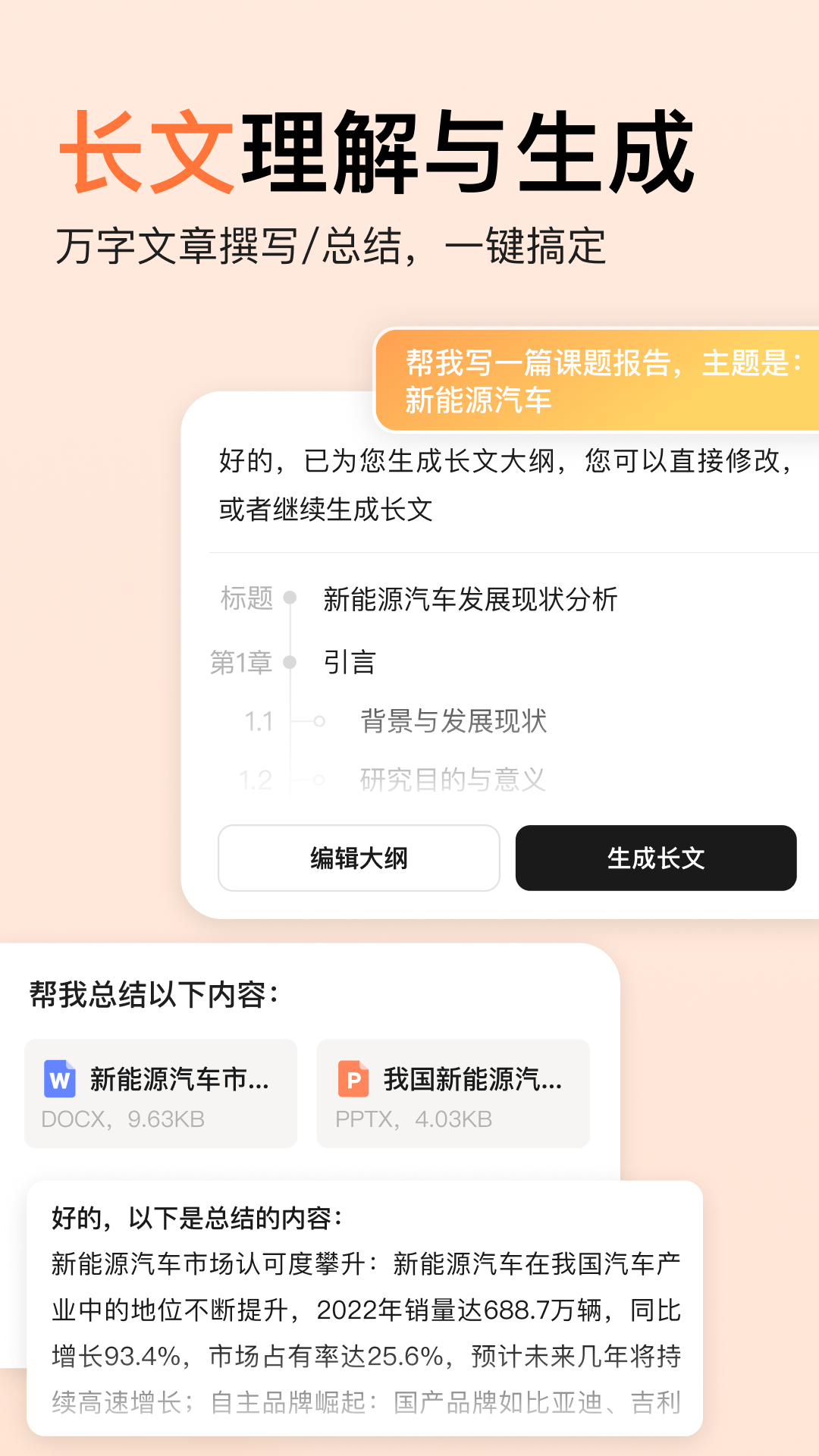 【超长文章写作】让长文创作变得简单轻松。只需输入主题,就能生成一篇内容丰富、结构严谨的万字长文,生成之后还能在线进行智能编辑、改写润色,一步到位。
