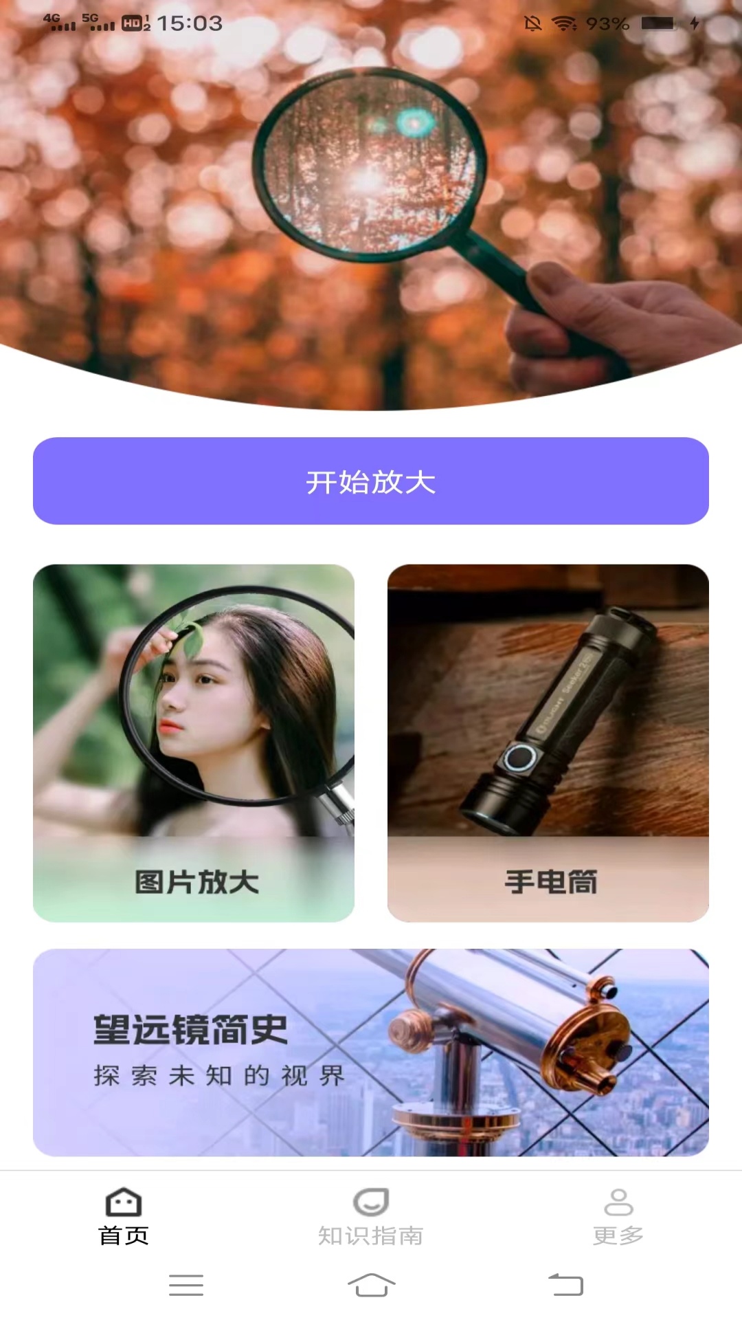 麒麟放大镜是一款功能强大的工具应用,你不仅可以进行图片放大和使用手电筒。还能在这里学习到望远镜的一些知识,包括什么是望远镜、望远镜的分类。